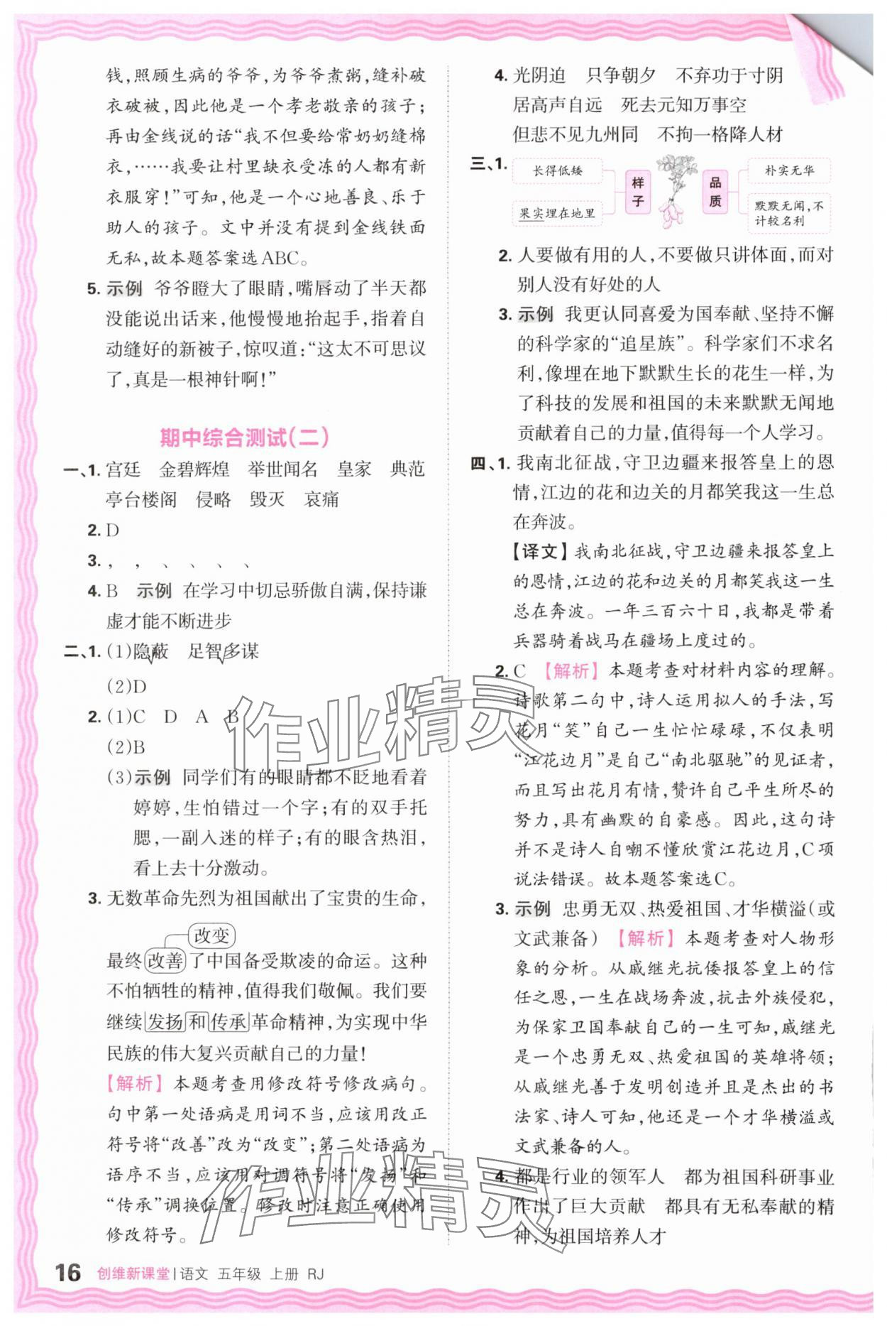注:目前有些书本章节名称可能整理的还不是很完善,但都是按照顺序排列的,请同学们按照顺序仔细查找。练习册 2024年创维新课堂五年级语文上册人教版 答案主要是用来给同学们做完题方便对答案用的,请勿直接抄袭。