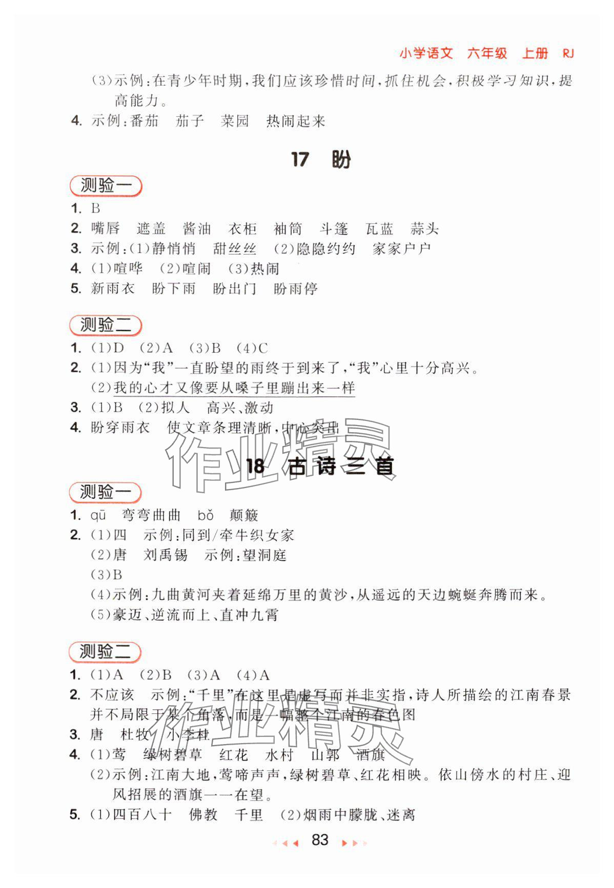 注:目前有些书本章节名称可能整理的还不是很完善,但都是按照顺序排列的,请同学们按照顺序仔细查找。练习册 2024年53随堂测六年级语文上册人教版 答案主要是用来给同学们做完题方便对答案用的,请勿直接抄袭。