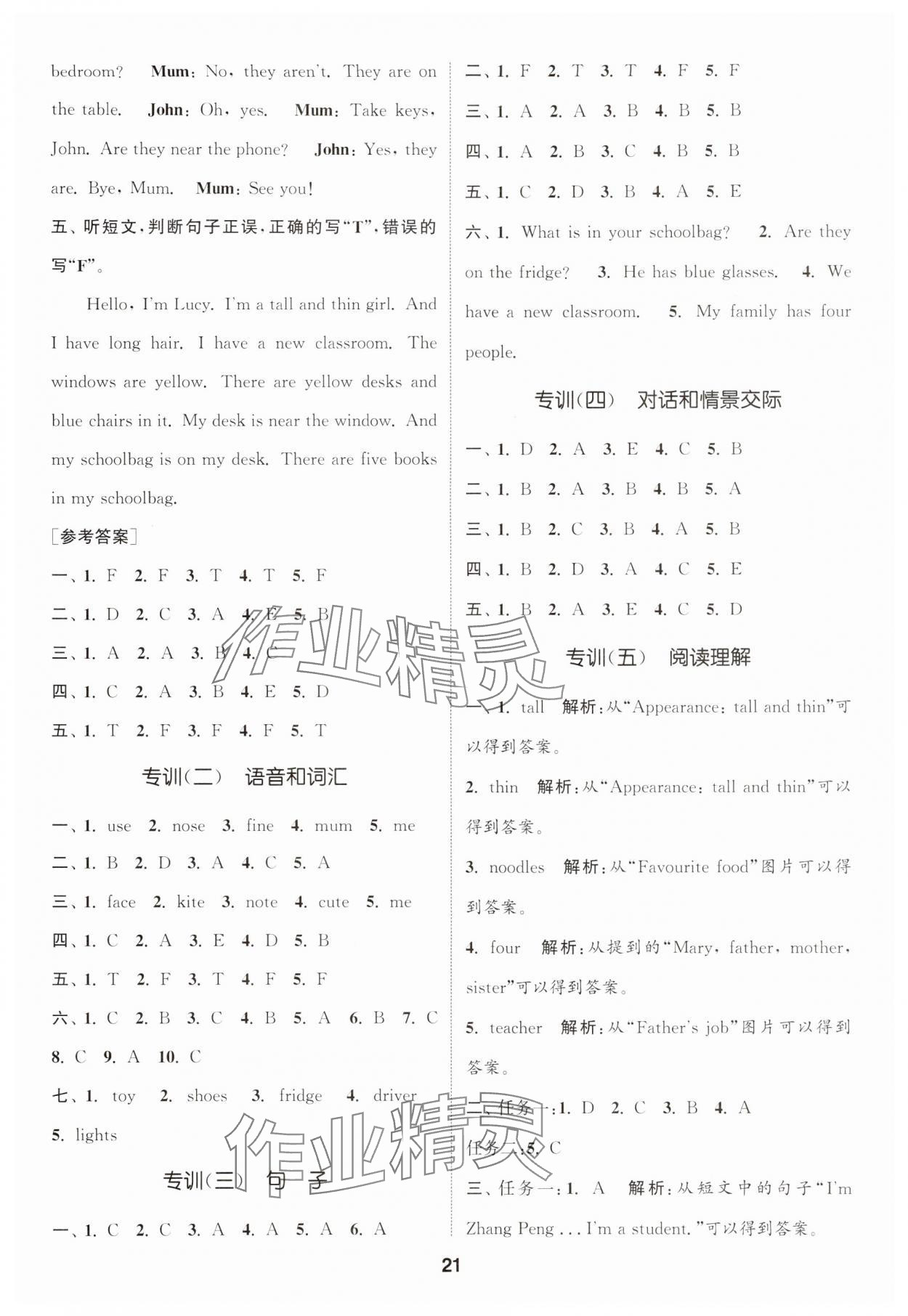 注:目前有些书本章节名称可能整理的还不是很完善,但都是按照顺序排列的,请同学们按照顺序仔细查找。练习册 2024年通城学典课时作业本四年级英语上册人教版 答案主要是用来给同学们做完题方便对答案用的,请勿直接抄袭。