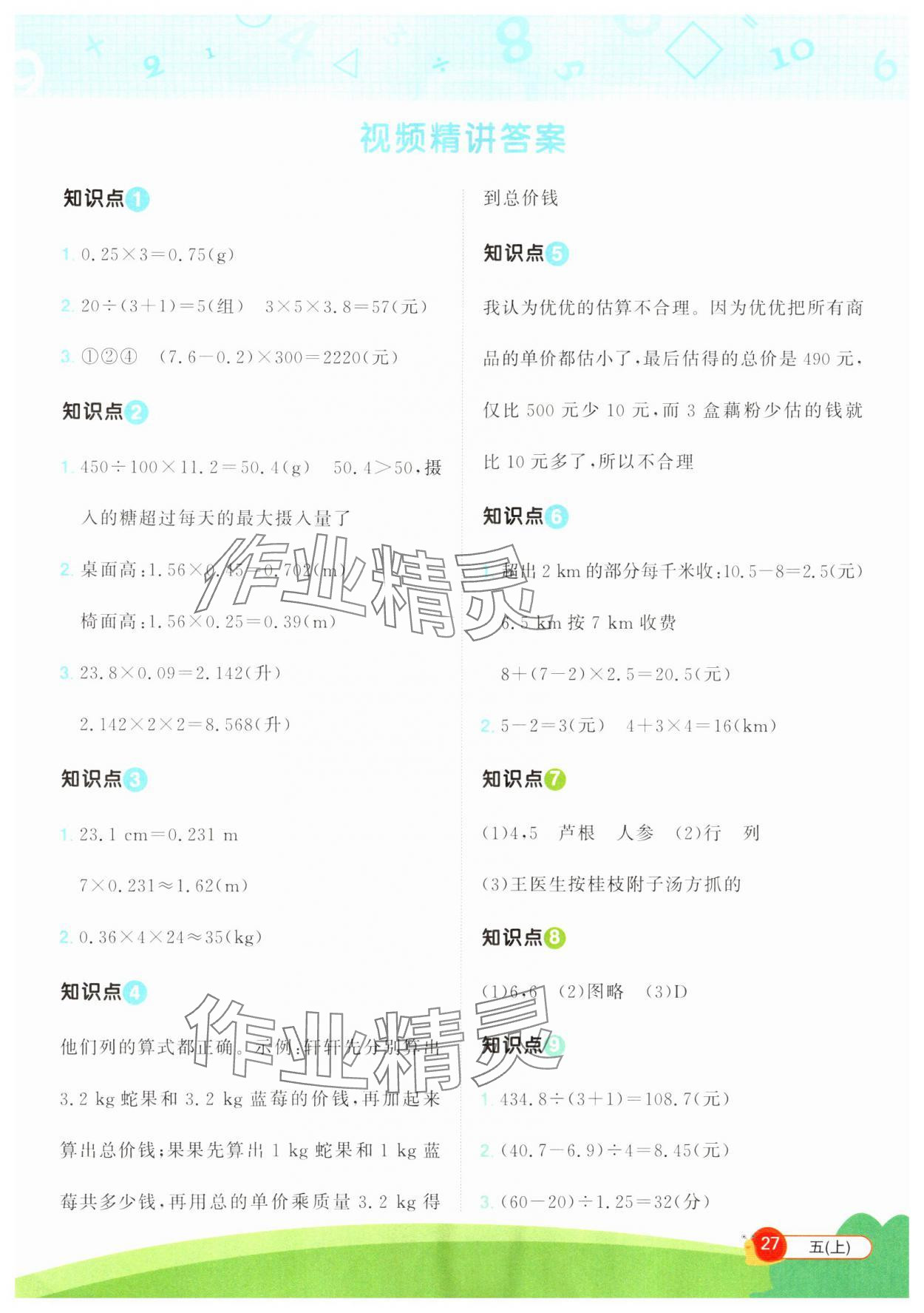 2024年阳光同学计算小达人五年级数学上册北师大版