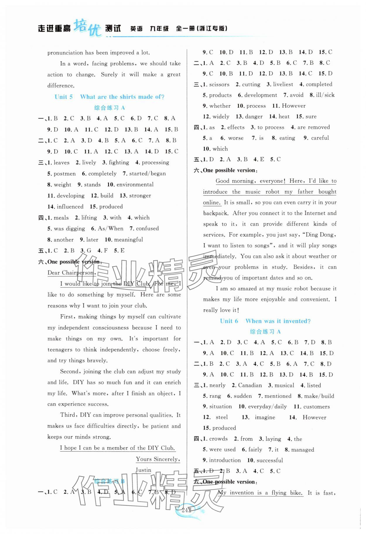 注:目前有些书本章节名称可能整理的还不是很完善,但都是按照顺序排列的,请同学们按照顺序仔细查找。练习册 2024年走进重高培优测试九年级英语全一册人教版浙江专版 答案主要是用来给同学们做完题方便对答案用的,请勿直接抄袭。