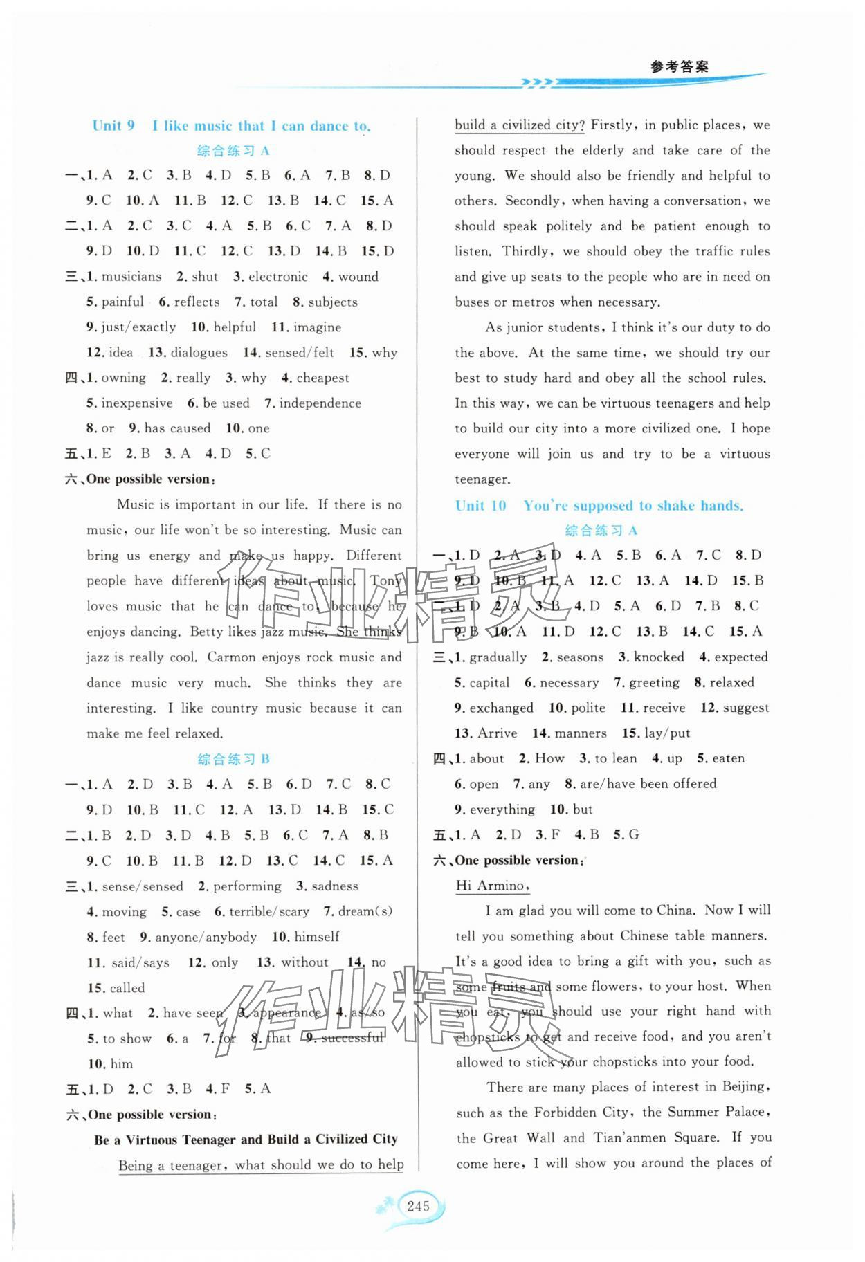 注:目前有些书本章节名称可能整理的还不是很完善,但都是按照顺序排列的,请同学们按照顺序仔细查找。练习册 2024年走进重高培优测试九年级英语全一册人教版浙江专版 答案主要是用来给同学们做完题方便对答案用的,请勿直接抄袭。