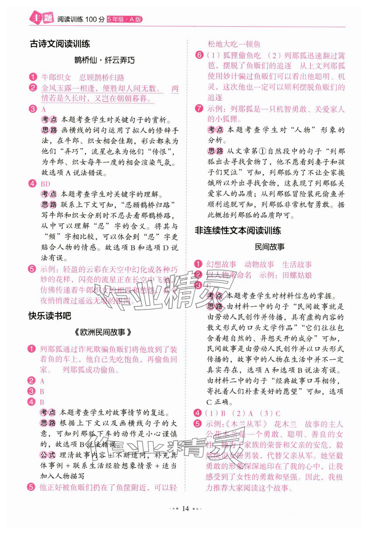 注:目前有些书本章节名称可能整理的还不是很完善,但都是按照顺序排列的,请同学们按照顺序仔细查找。练习册 2024年主题阅读训练100分五年级语文人教版浙江专版 答案主要是用来给同学们做完题方便对答案用的,请勿直接抄袭。