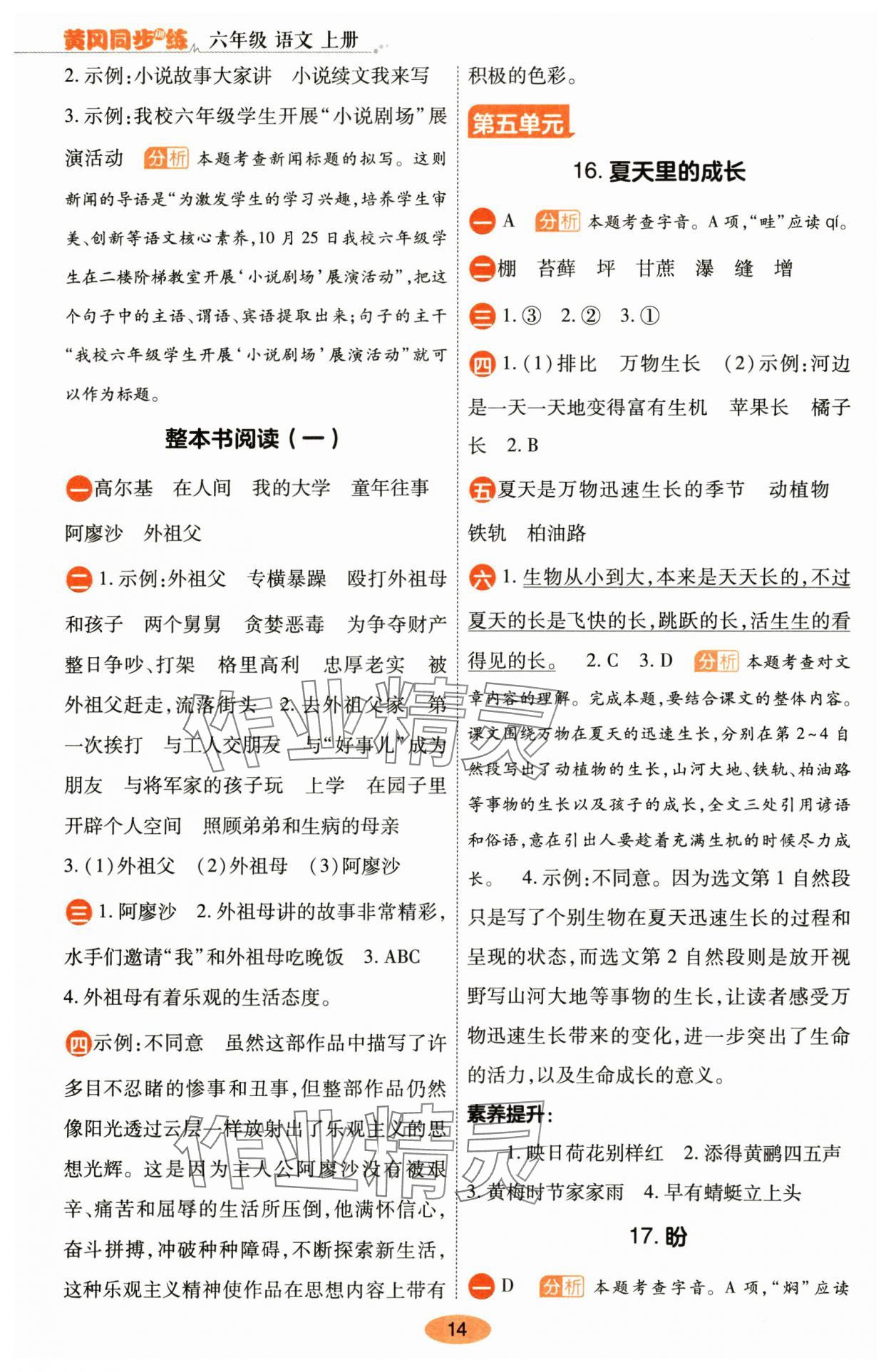 注:目前有些书本章节名称可能整理的还不是很完善,但都是按照顺序排列的,请同学们按照顺序仔细查找。练习册 2024年黄冈同步训练六年级语文上册人教版 答案主要是用来给同学们做完题方便对答案用的,请勿直接抄袭。