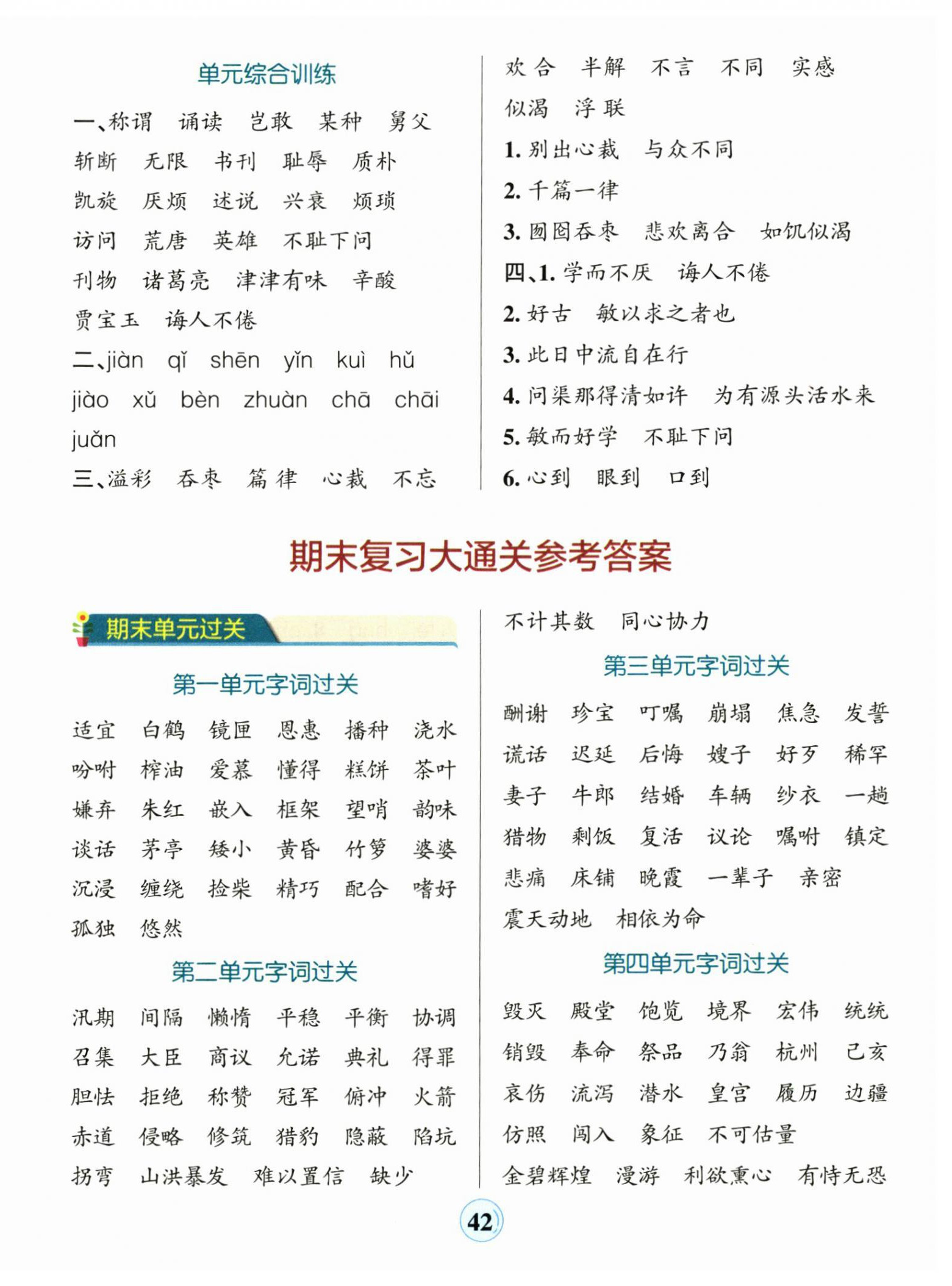 注:目前有些书本章节名称可能整理的还不是很完善,但都是按照顺序排列的,请同学们按照顺序仔细查找。练习册 2024年小学学霸默写五年级语文上册人教版 答案主要是用来给同学们做完题方便对答案用的,请勿直接抄袭。