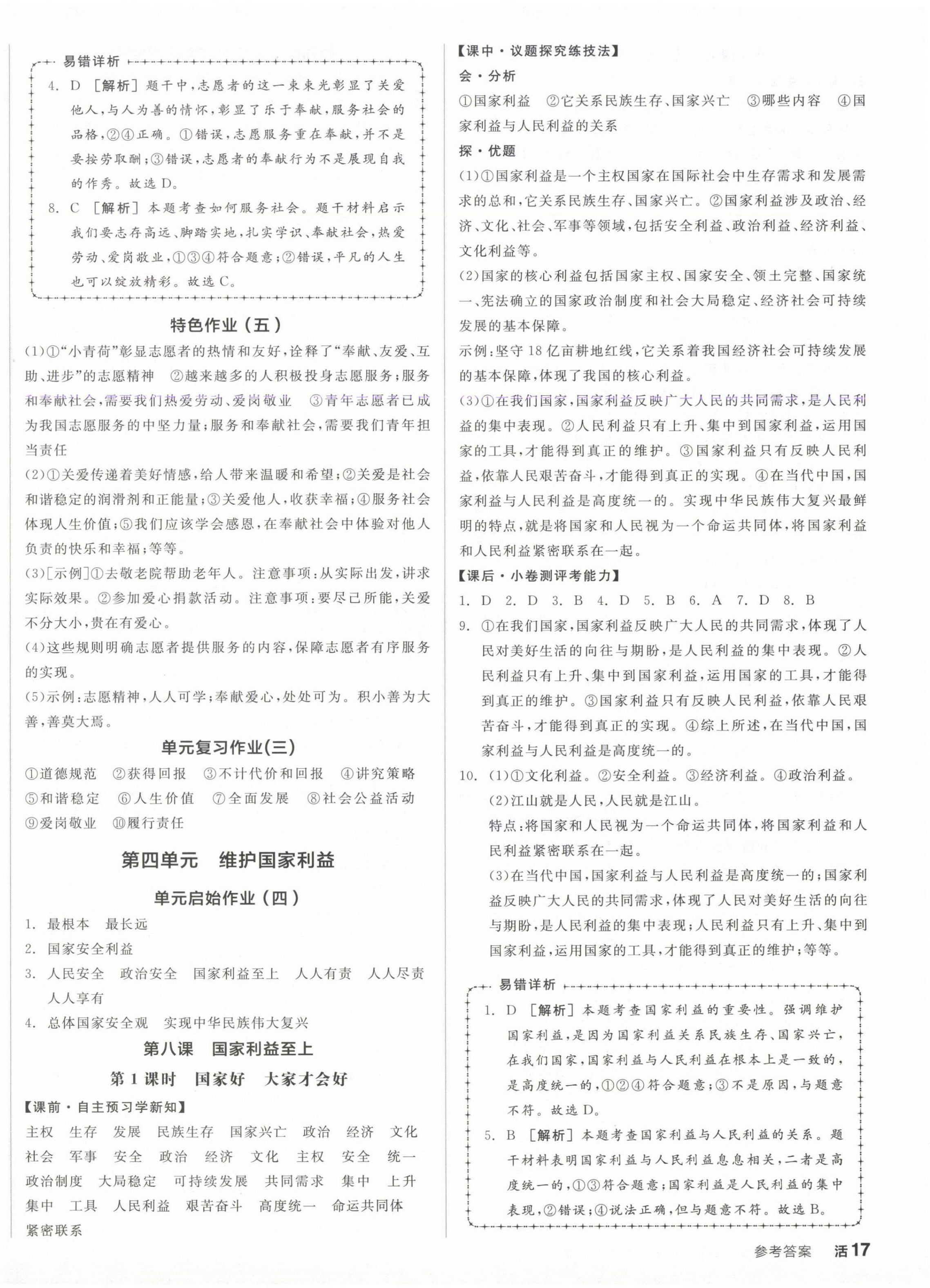 注:目前有些书本章节名称可能整理的还不是很完善,但都是按照顺序排列的,请同学们按照顺序仔细查找。练习册 2024年全品学练考八年级道德与法治上册人教版 答案主要是用来给同学们做完题方便对答案用的,请勿直接抄袭。