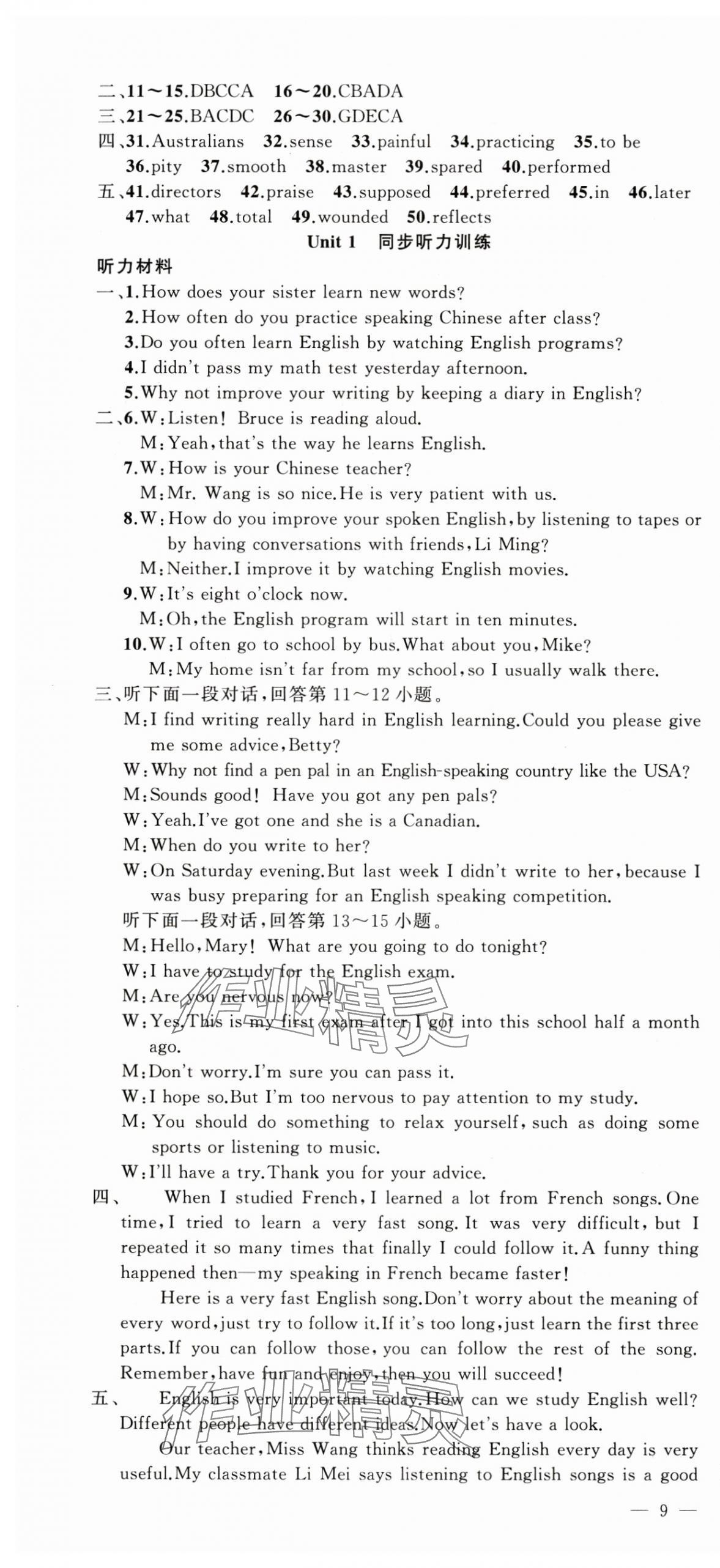 注:目前有些书本章节名称可能整理的还不是很完善,但都是按照顺序排列的,请同学们按照顺序仔细查找。练习册 2024年原创新课堂九年级英语上册人教版 答案主要是用来给同学们做完题方便对答案用的,请勿直接抄袭。