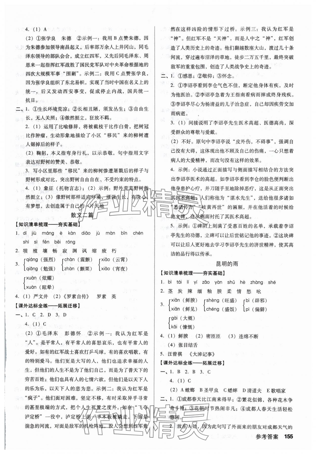 注:目前有些书本章节名称可能整理的还不是很完善,但都是按照顺序排列的,请同学们按照顺序仔细查找。练习册 2024年全优点练课计划八年级语文上册人教版 答案主要是用来给同学们做完题方便对答案用的,请勿直接抄袭。