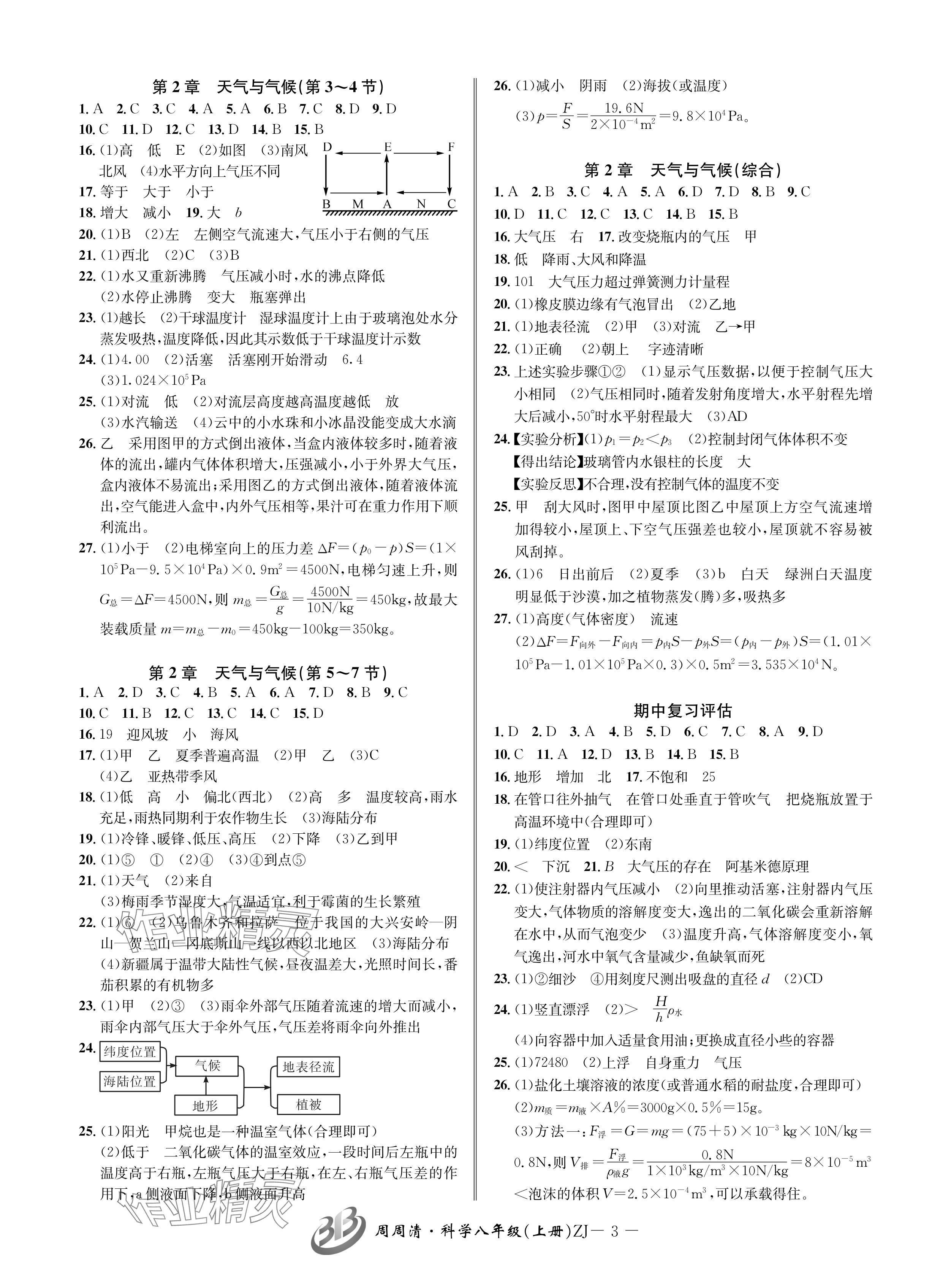 注:目前有些书本章节名称可能整理的还不是很完善,但都是按照顺序排列的,请同学们按照顺序仔细查找。练习册 2024年周周清检测八年级科学上册浙教版 答案主要是用来给同学们做完题方便对答案用的,请勿直接抄袭。