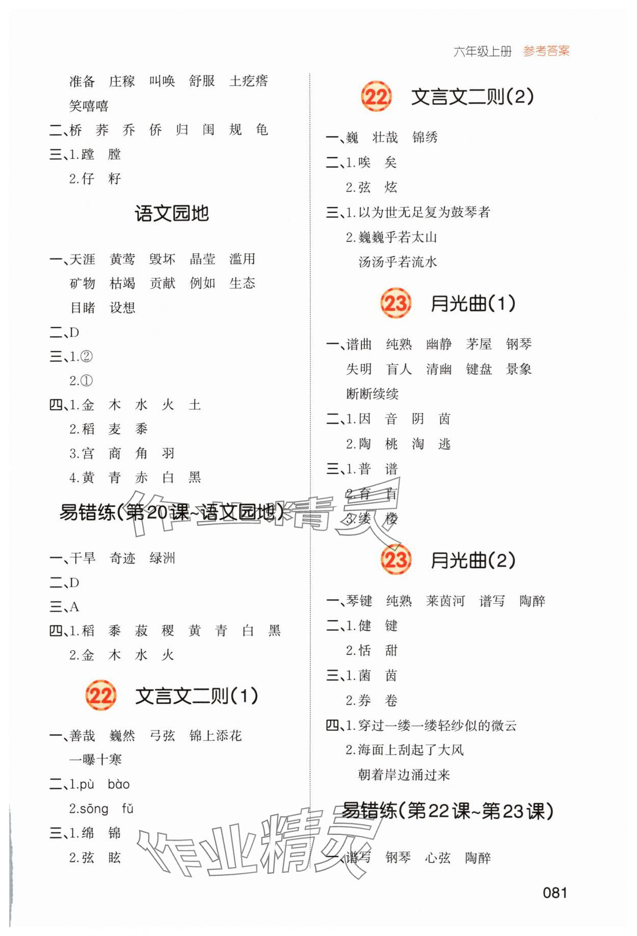 注:目前有些书本章节名称可能整理的还不是很完善,但都是按照顺序排列的,请同学们按照顺序仔细查找。练习册 2024年一本默写能力训练100分六年级语文上册人教版 答案主要是用来给同学们做完题方便对答案用的,请勿直接抄袭。