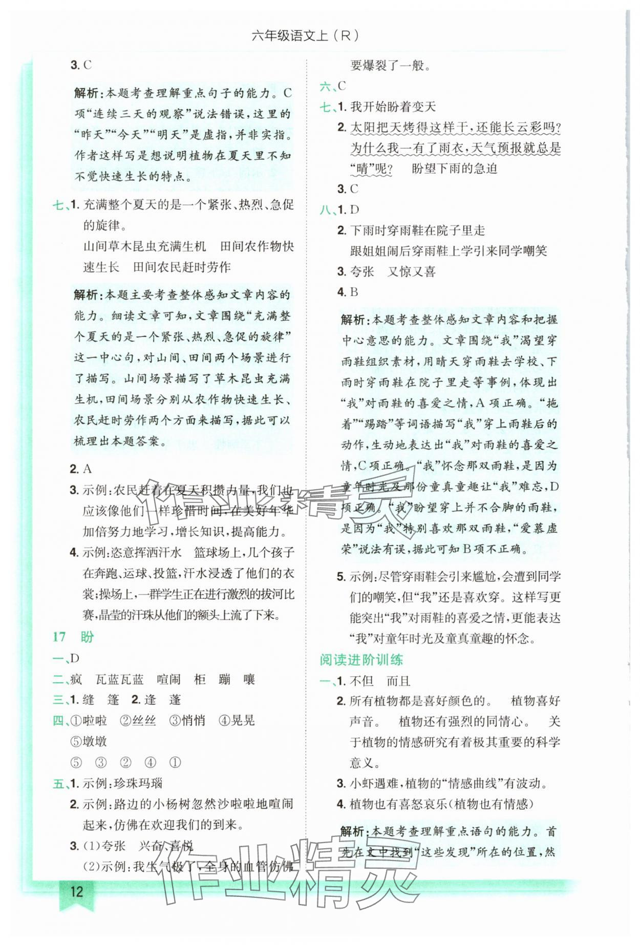 注:目前有些书本章节名称可能整理的还不是很完善,但都是按照顺序排列的,请同学们按照顺序仔细查找。练习册 2024年黄冈小状元作业本六年级语文上册人教版 答案主要是用来给同学们做完题方便对答案用的,请勿直接抄袭。