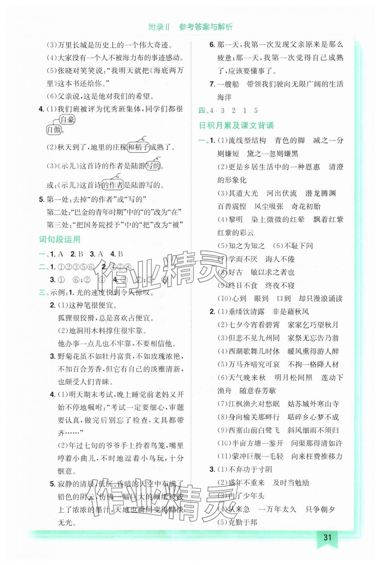 注:目前有些书本章节名称可能整理的还不是很完善,但都是按照顺序排列的,请同学们按照顺序仔细查找。练习册 2024年黄冈小状元作业本五年级语文上册人教版 答案主要是用来给同学们做完题方便对答案用的,请勿直接抄袭。