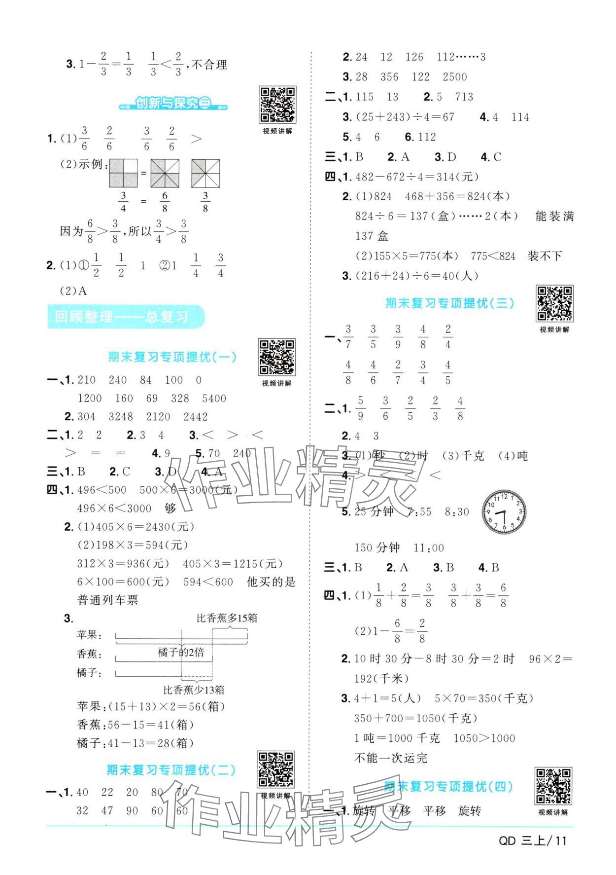 注:目前有些书本章节名称可能整理的还不是很完善,但都是按照顺序排列的,请同学们按照顺序仔细查找。练习册 2024年阳光同学课时优化作业三年级数学上册青岛版山东专版 答案主要是用来给同学们做完题方便对答案用的,请勿直接抄袭。