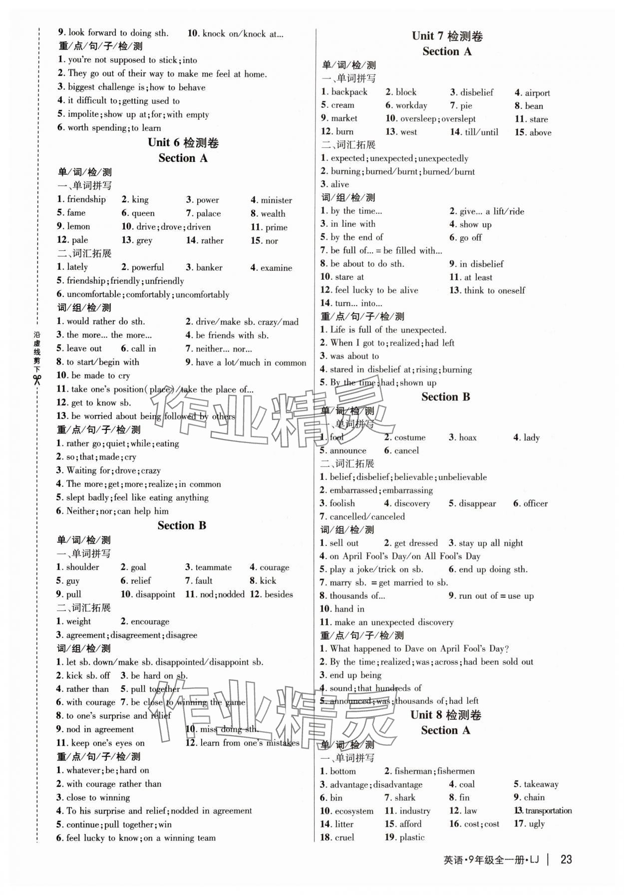 注:目前有些书本章节名称可能整理的还不是很完善,但都是按照顺序排列的,请同学们按照顺序仔细查找。练习册 2024年细解巧练九年级英语全一册鲁教版五四制 答案主要是用来给同学们做完题方便对答案用的,请勿直接抄袭。
