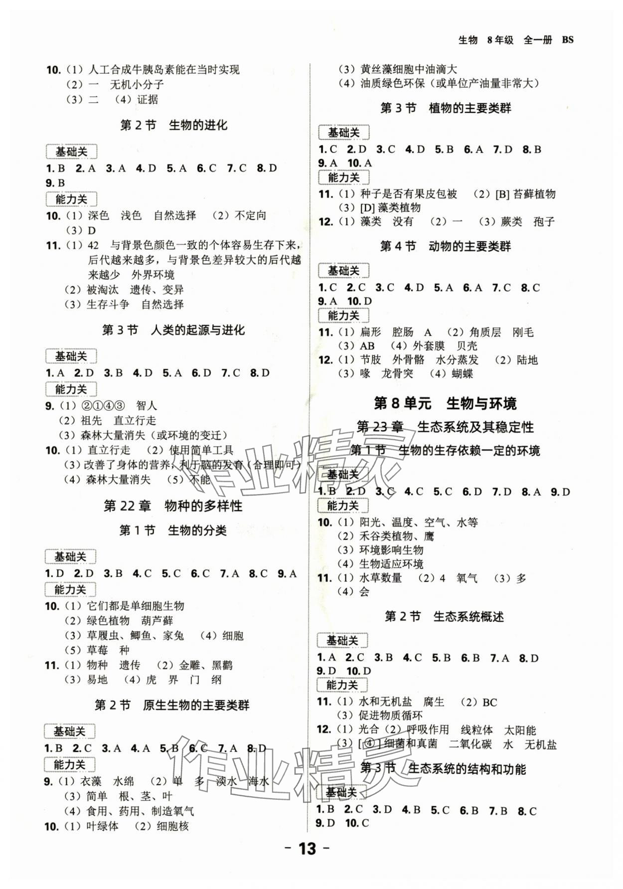 注:目前有些书本章节名称可能整理的还不是很完善,但都是按照顺序排列的,请同学们按照顺序仔细查找。练习册 2024年全程突破八年级生物全一册北师大版 答案主要是用来给同学们做完题方便对答案用的,请勿直接抄袭。