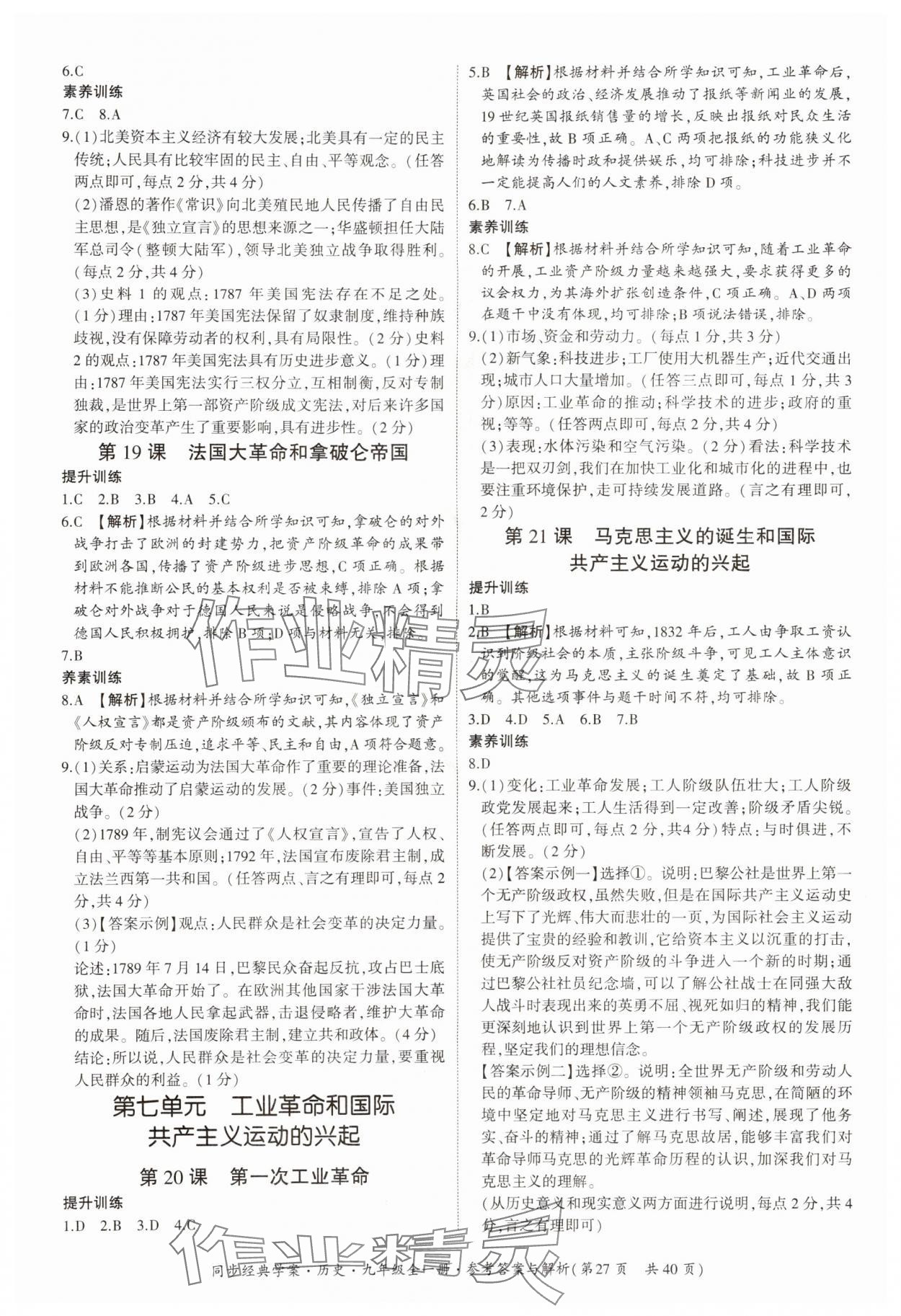 注:目前有些书本章节名称可能整理的还不是很完善,但都是按照顺序排列的,请同学们按照顺序仔细查找。练习册 2024年同步经典学案九年级历史全一册人教版 答案主要是用来给同学们做完题方便对答案用的,请勿直接抄袭。