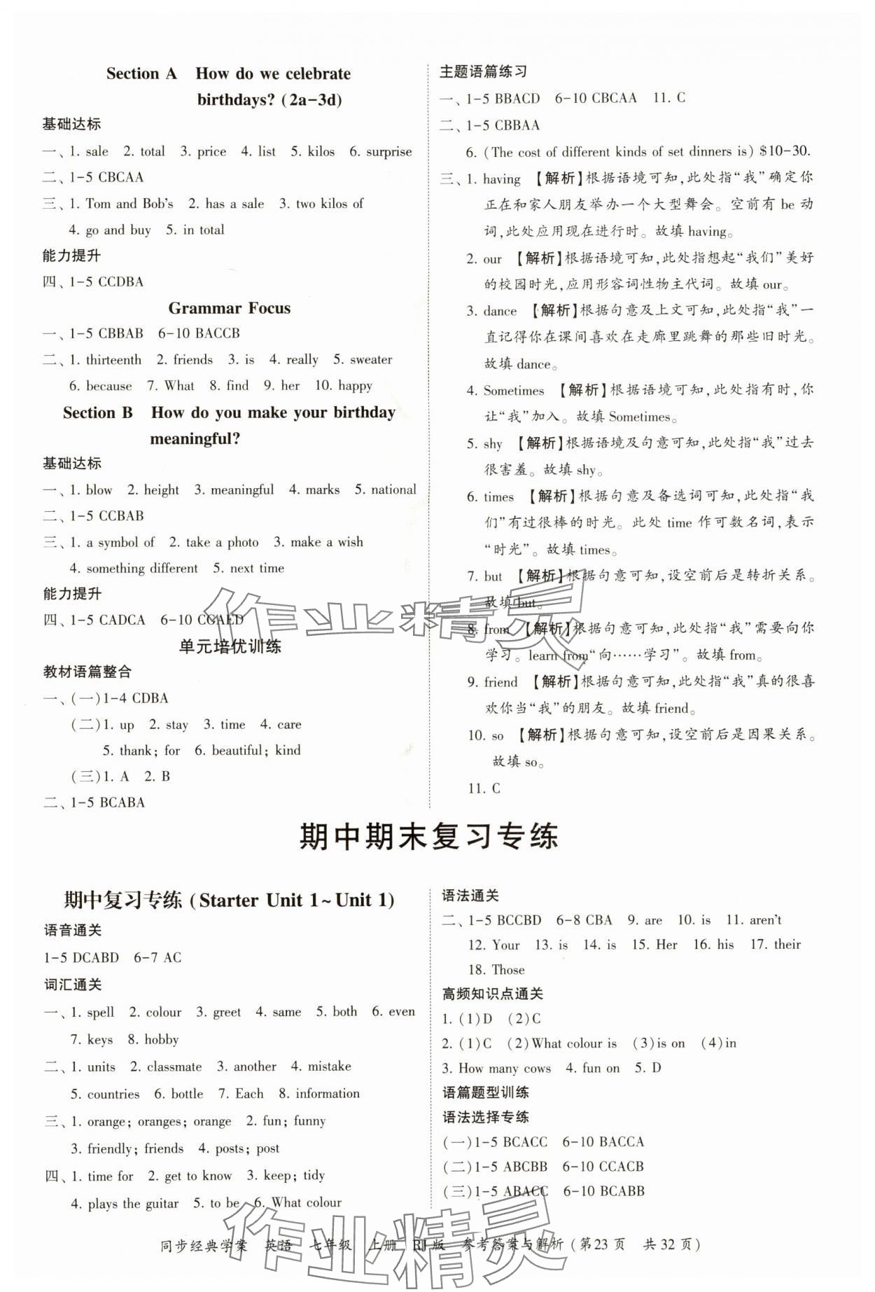 注:目前有些书本章节名称可能整理的还不是很完善,但都是按照顺序排列的,请同学们按照顺序仔细查找。练习册 2024年同步经典学案七年级英语上册人教版 答案主要是用来给同学们做完题方便对答案用的,请勿直接抄袭。