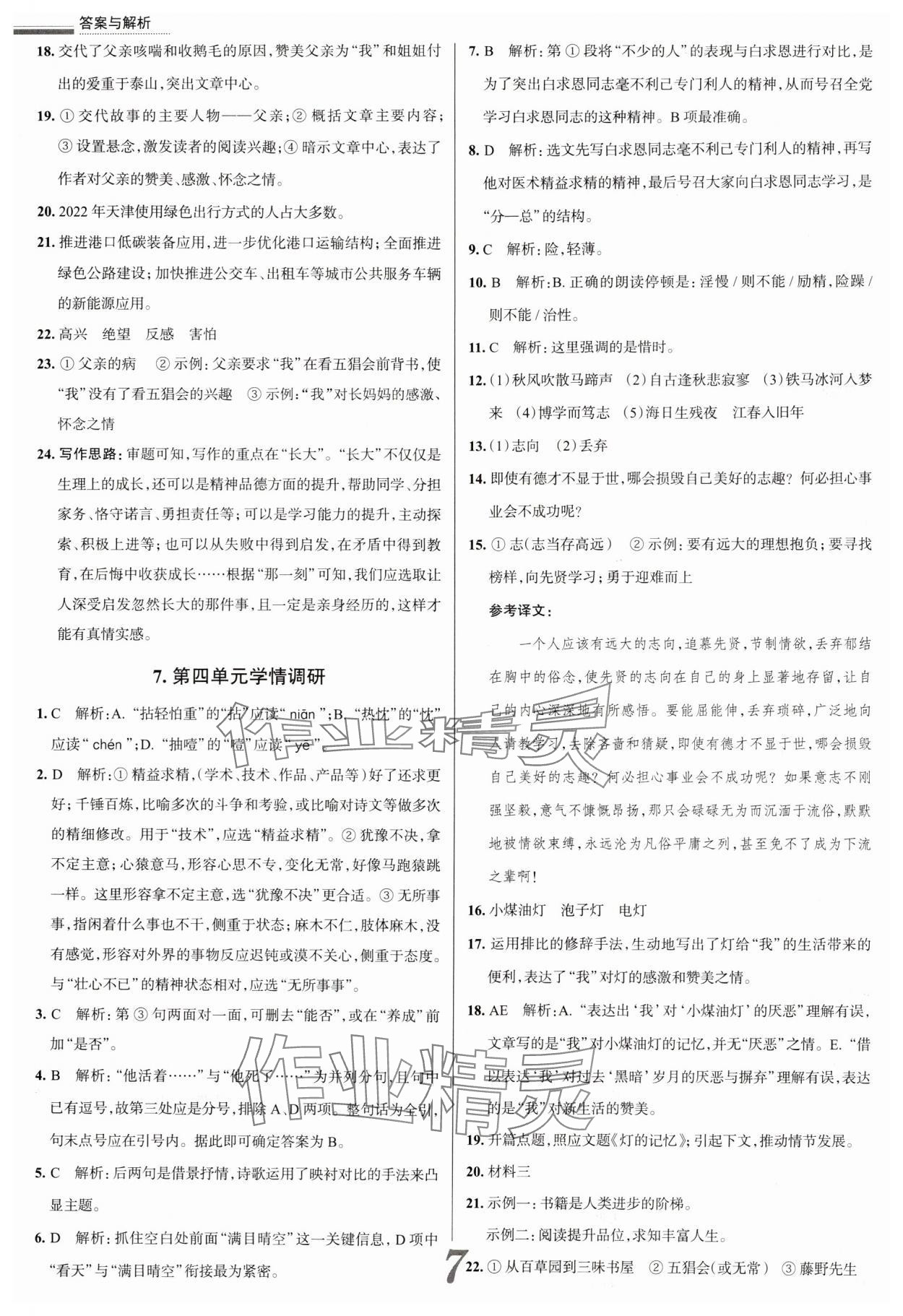 注:目前有些书本章节名称可能整理的还不是很完善,但都是按照顺序排列的,请同学们按照顺序仔细查找。练习册 2024年真题圈七年级语文上册人教版天津专版 答案主要是用来给同学们做完题方便对答案用的,请勿直接抄袭。