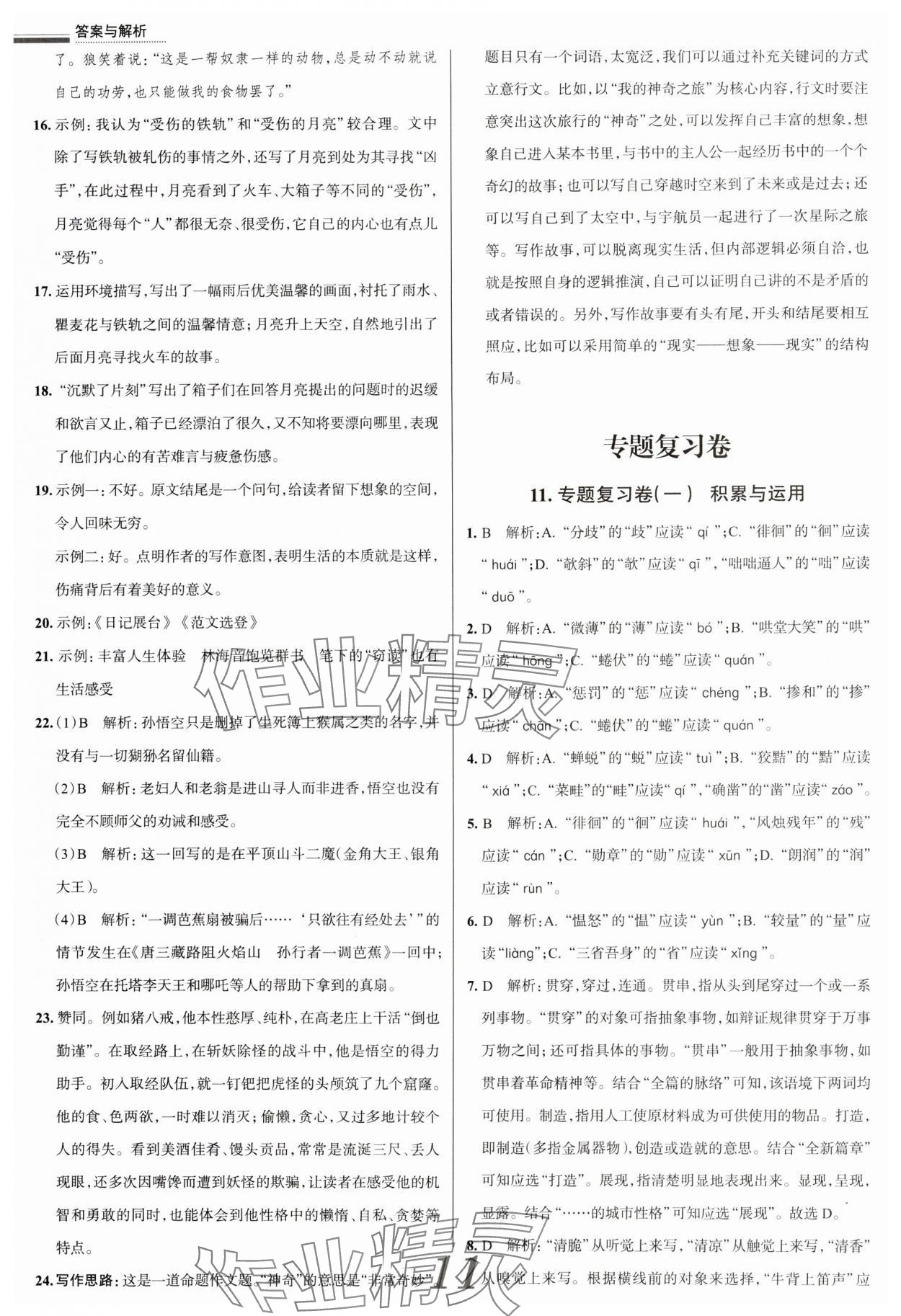 注:目前有些书本章节名称可能整理的还不是很完善,但都是按照顺序排列的,请同学们按照顺序仔细查找。练习册 2024年真题圈七年级语文上册人教版天津专版 答案主要是用来给同学们做完题方便对答案用的,请勿直接抄袭。