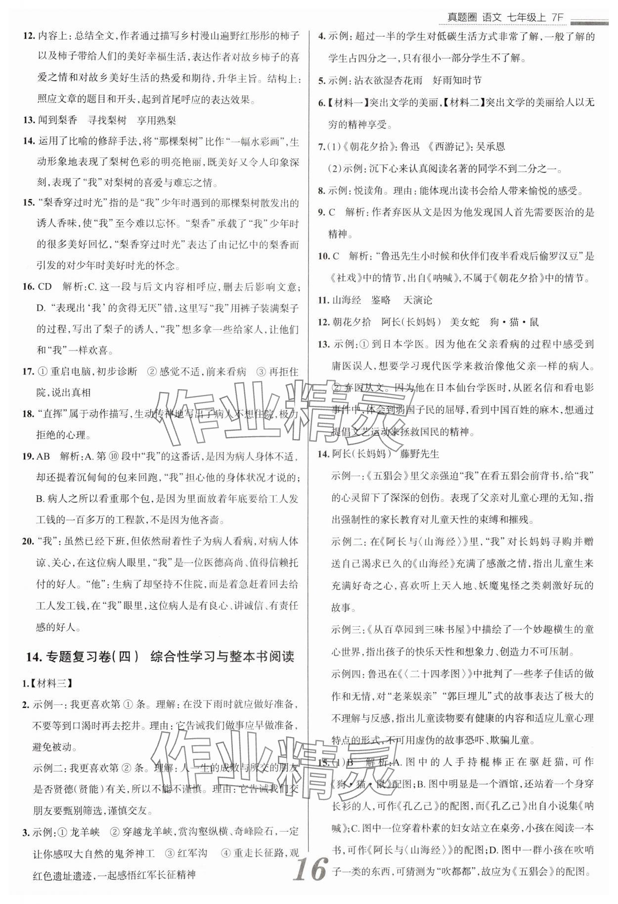 注:目前有些书本章节名称可能整理的还不是很完善,但都是按照顺序排列的,请同学们按照顺序仔细查找。练习册 2024年真题圈七年级语文上册人教版天津专版 答案主要是用来给同学们做完题方便对答案用的,请勿直接抄袭。
