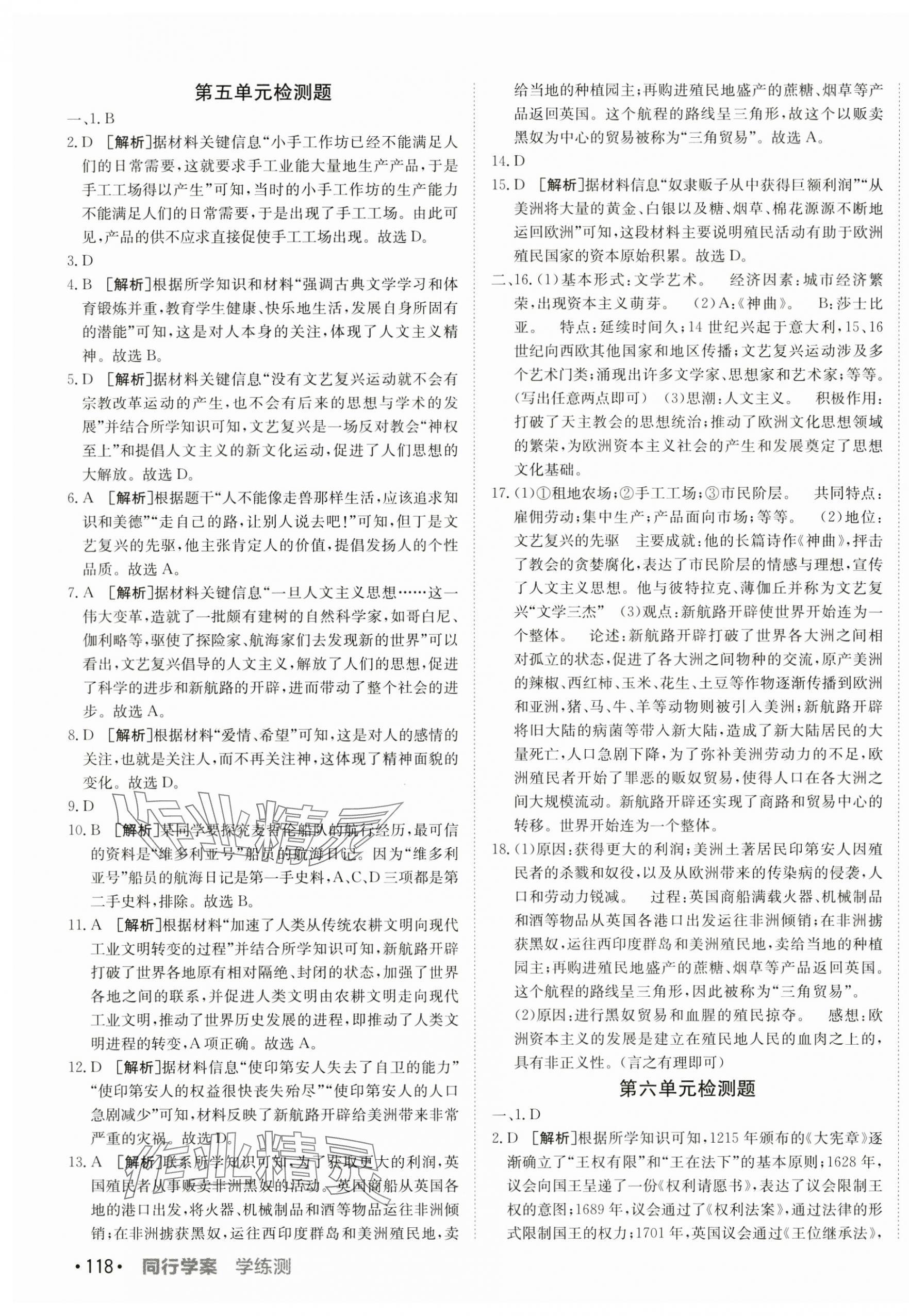 注:目前有些书本章节名称可能整理的还不是很完善,但都是按照顺序排列的,请同学们按照顺序仔细查找。练习册 2024年同行学案学练测九年级历史上册人教版 答案主要是用来给同学们做完题方便对答案用的,请勿直接抄袭。
