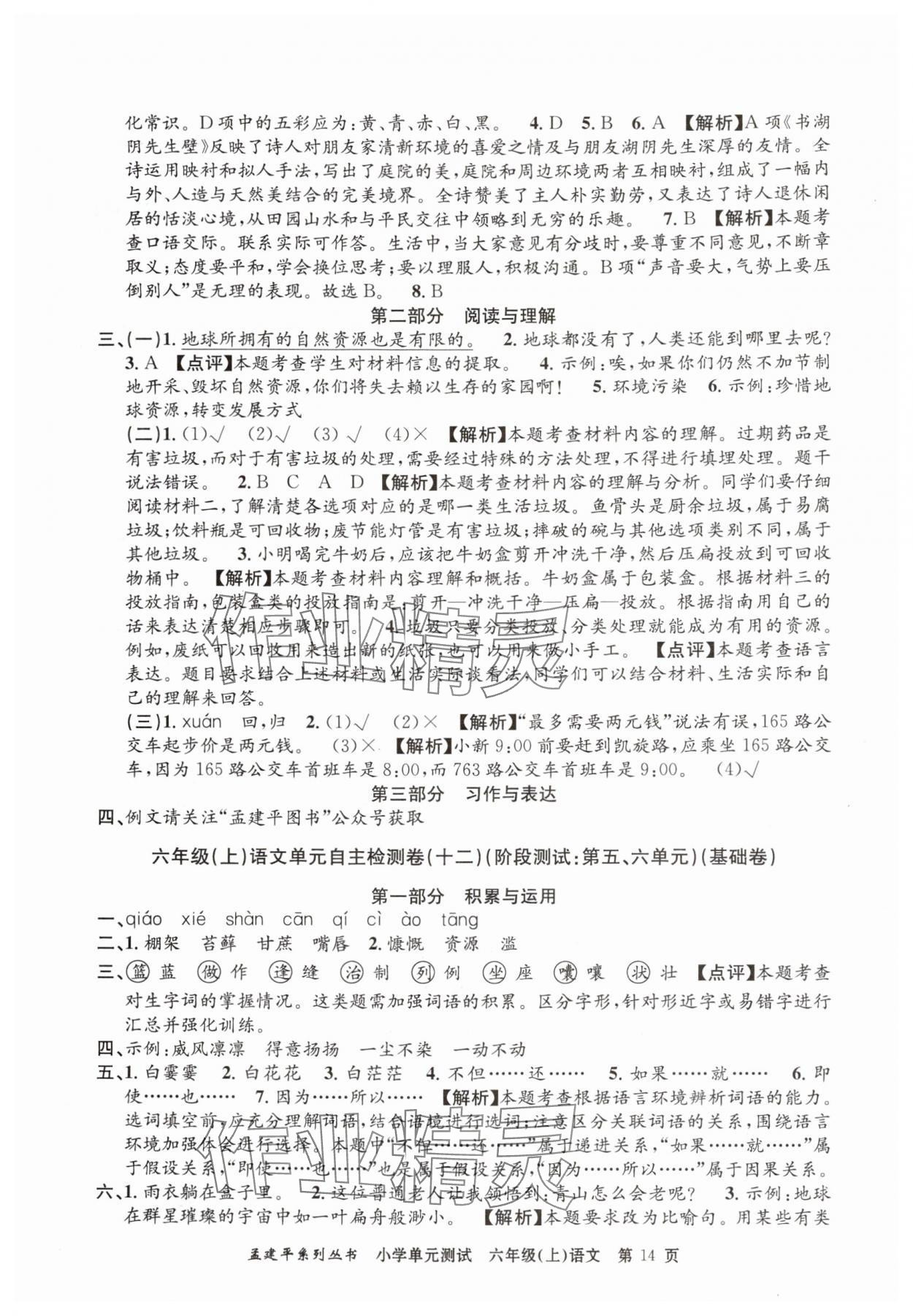 注:目前有些书本章节名称可能整理的还不是很完善,但都是按照顺序排列的,请同学们按照顺序仔细查找。练习册 2024年孟建平单元测试六年级语文上册人教版 答案主要是用来给同学们做完题方便对答案用的,请勿直接抄袭。