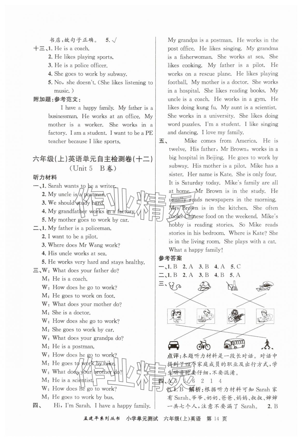 注:目前有些书本章节名称可能整理的还不是很完善,但都是按照顺序排列的,请同学们按照顺序仔细查找。练习册 2024年孟建平单元测试六年级英语上册人教版 答案主要是用来给同学们做完题方便对答案用的,请勿直接抄袭。