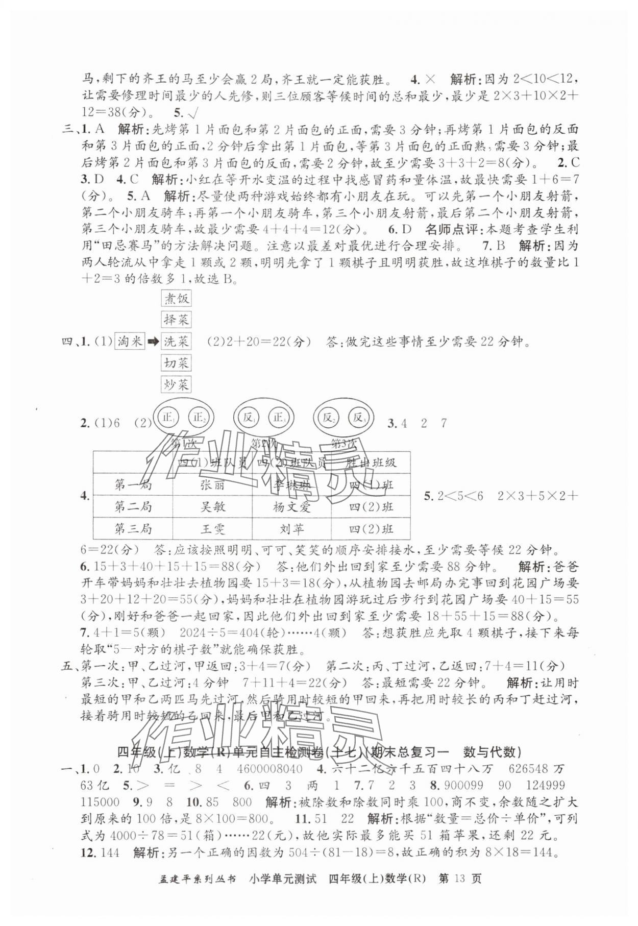 注:目前有些书本章节名称可能整理的还不是很完善,但都是按照顺序排列的,请同学们按照顺序仔细查找。练习册 2024年孟建平单元测试四年级数学上册人教版 答案主要是用来给同学们做完题方便对答案用的,请勿直接抄袭。