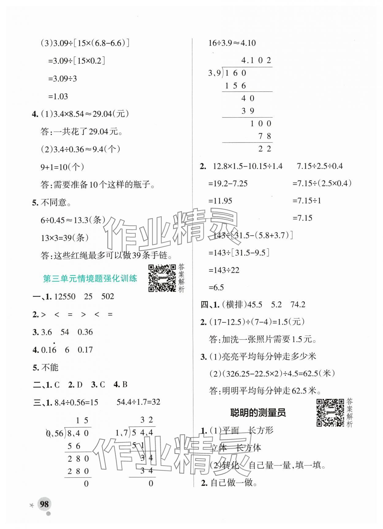 注:目前有些书本章节名称可能整理的还不是很完善,但都是按照顺序排列的,请同学们按照顺序仔细查找。练习册 2024年小学学霸作业本五年级数学上册青岛版山东专版 答案主要是用来给同学们做完题方便对答案用的,请勿直接抄袭。