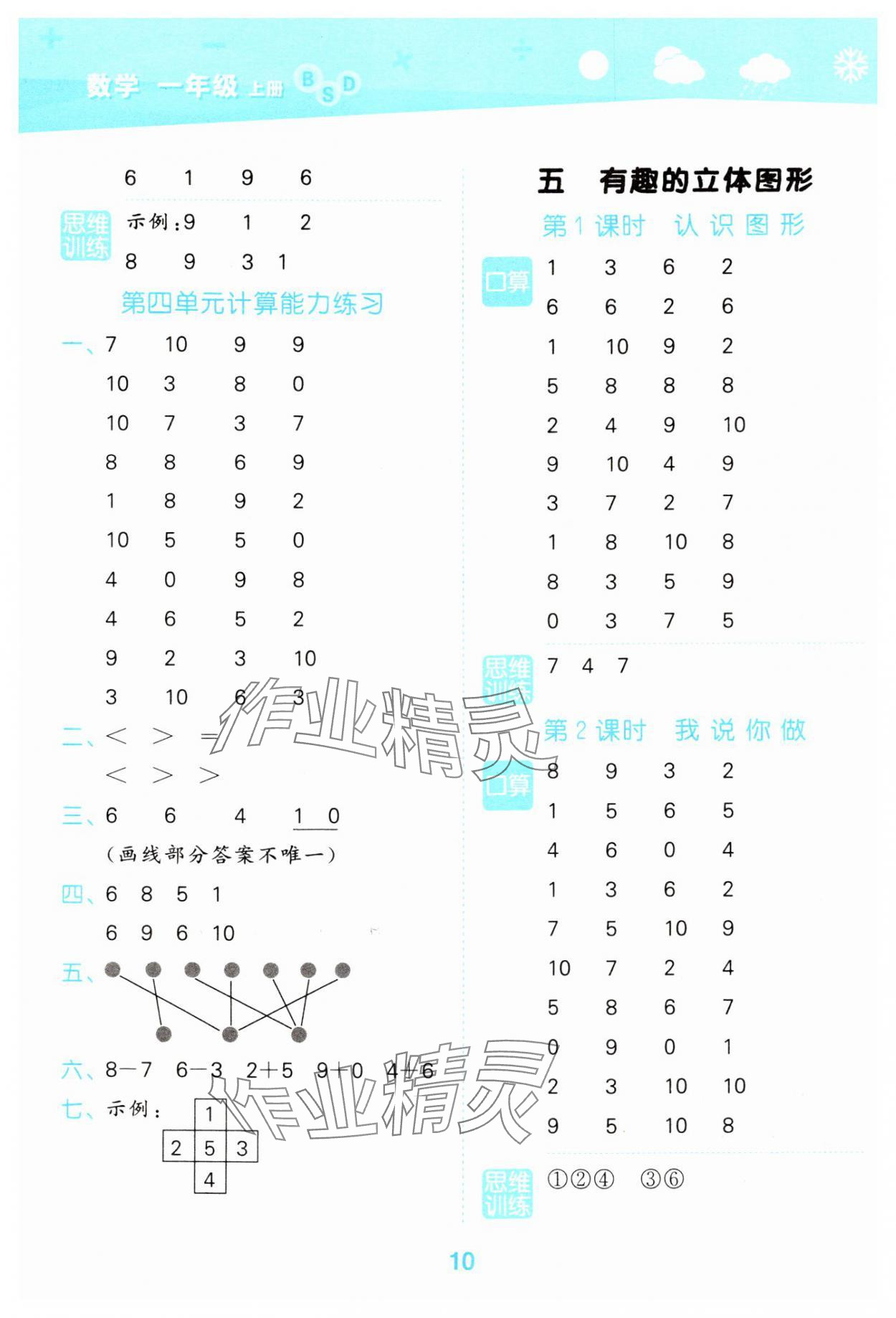 注:目前有些书本章节名称可能整理的还不是很完善,但都是按照顺序排列的,请同学们按照顺序仔细查找。练习册 2024年口算大通关一年级数学上册北师大版 答案主要是用来给同学们做完题方便对答案用的,请勿直接抄袭。