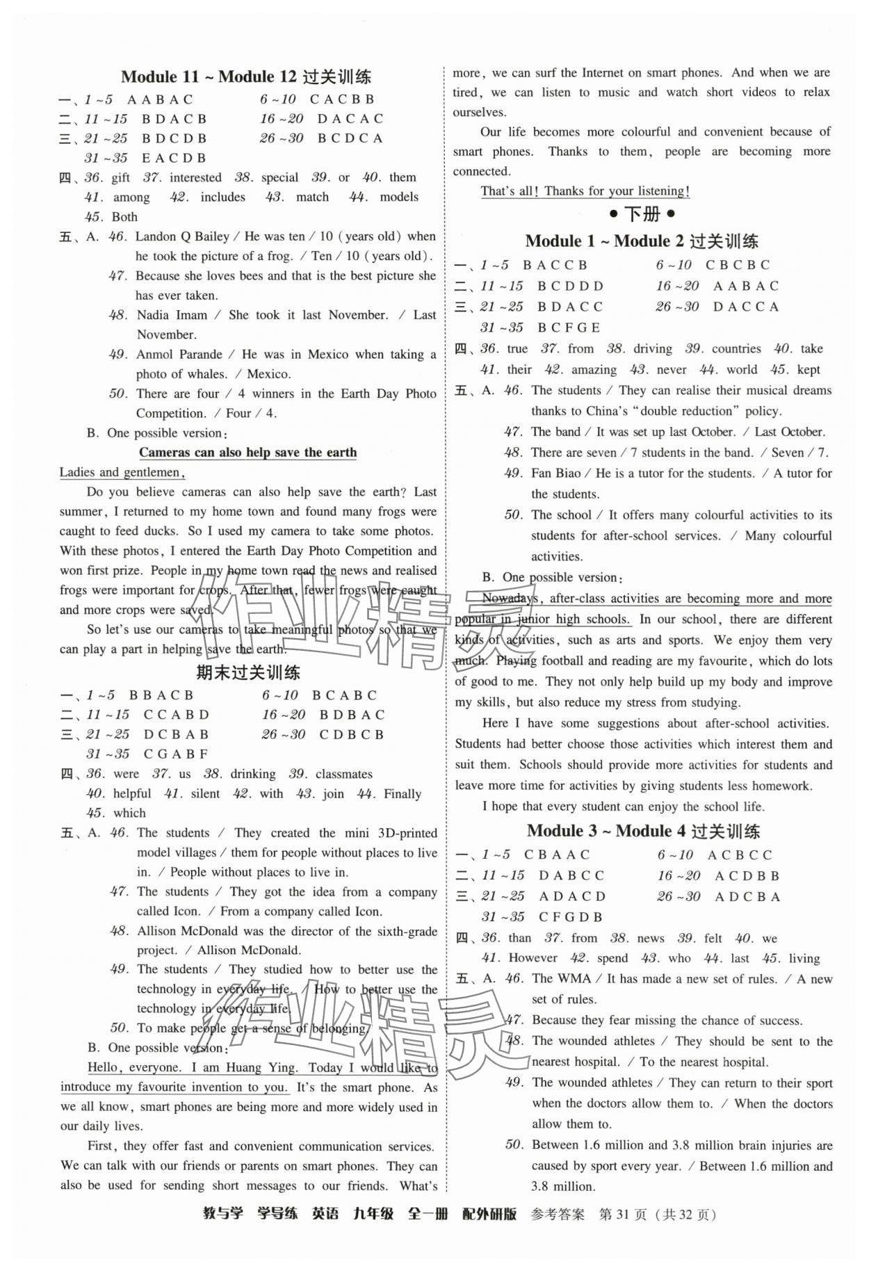 注:目前有些书本章节名称可能整理的还不是很完善,但都是按照顺序排列的,请同学们按照顺序仔细查找。练习册 2024年教与学学导练九年级英语全一册外研版 答案主要是用来给同学们做完题方便对答案用的,请勿直接抄袭。