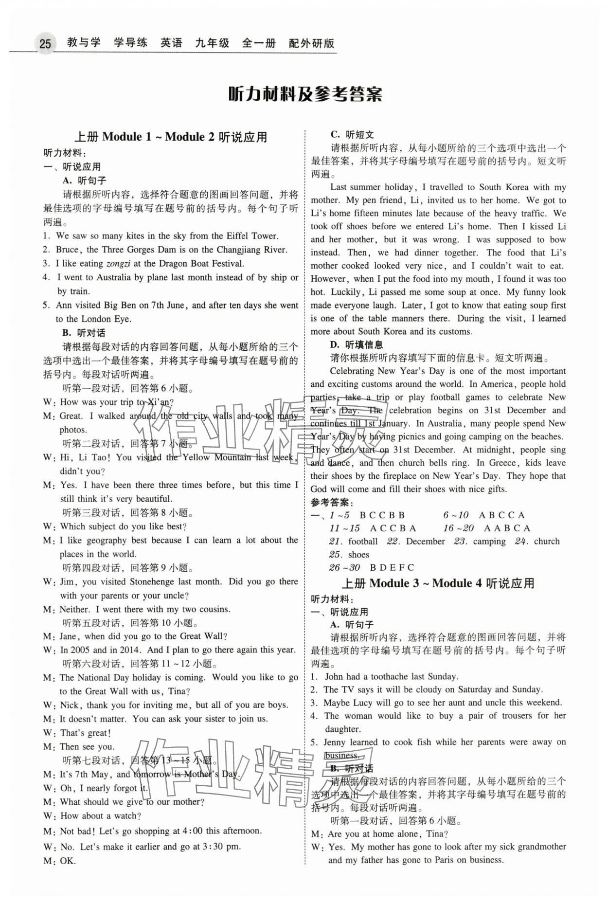 注:目前有些书本章节名称可能整理的还不是很完善,但都是按照顺序排列的,请同学们按照顺序仔细查找。练习册 2024年教与学学导练九年级英语全一册外研版 答案主要是用来给同学们做完题方便对答案用的,请勿直接抄袭。