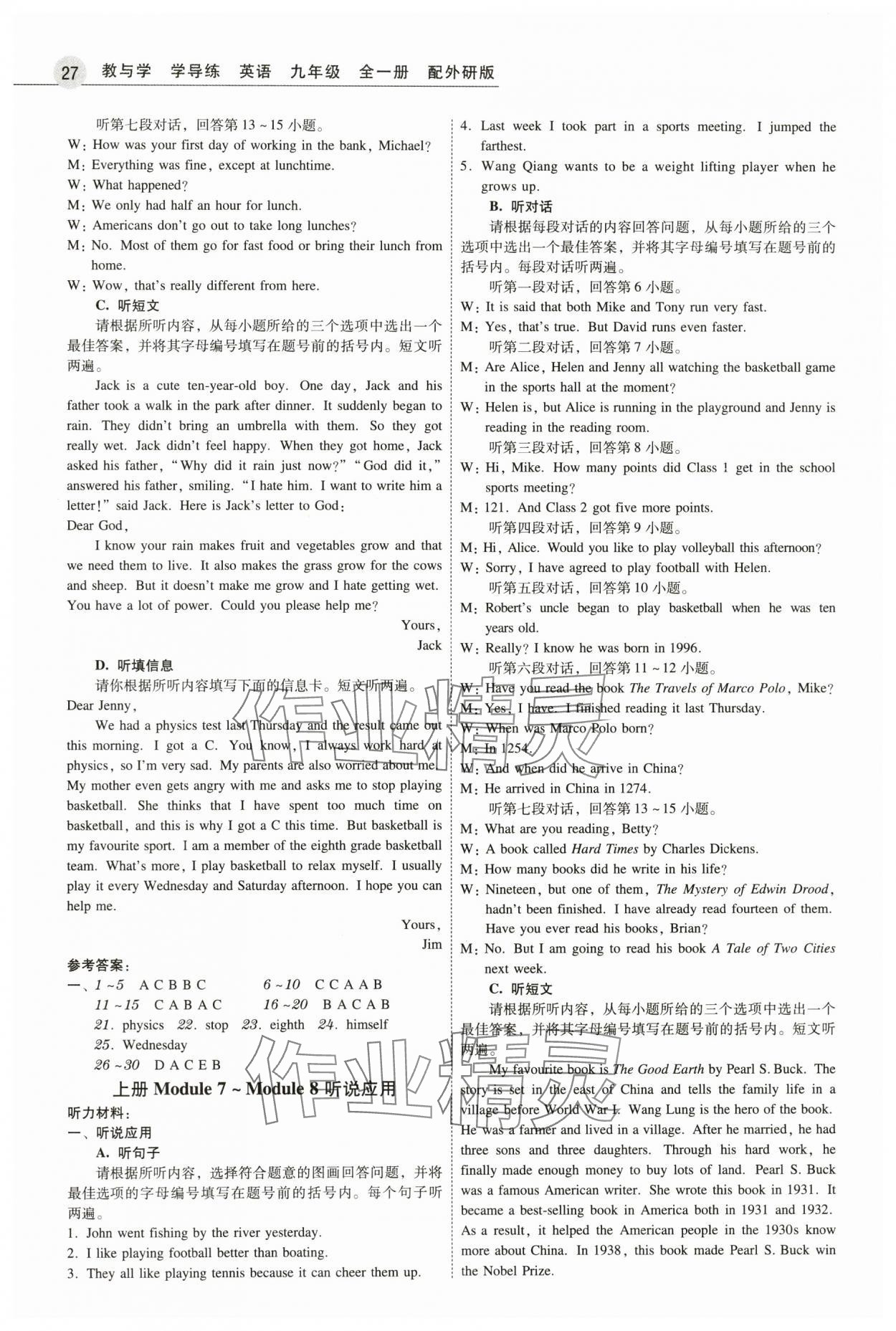 注:目前有些书本章节名称可能整理的还不是很完善,但都是按照顺序排列的,请同学们按照顺序仔细查找。练习册 2024年教与学学导练九年级英语全一册外研版 答案主要是用来给同学们做完题方便对答案用的,请勿直接抄袭。