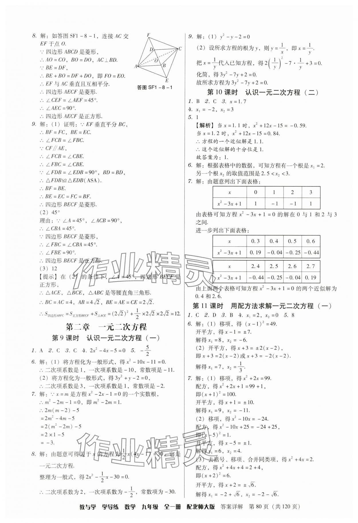 注:目前有些书本章节名称可能整理的还不是很完善,但都是按照顺序排列的,请同学们按照顺序仔细查找。练习册 2024年教与学学导练九年级数学全一册北师大版 答案主要是用来给同学们做完题方便对答案用的,请勿直接抄袭。
