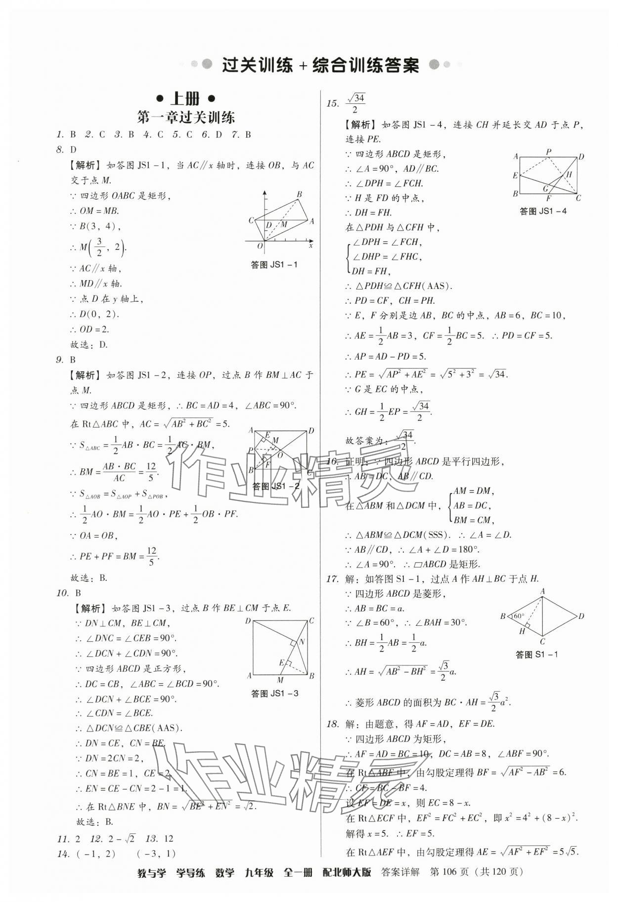 注:目前有些书本章节名称可能整理的还不是很完善,但都是按照顺序排列的,请同学们按照顺序仔细查找。练习册 2024年教与学学导练九年级数学全一册北师大版 答案主要是用来给同学们做完题方便对答案用的,请勿直接抄袭。