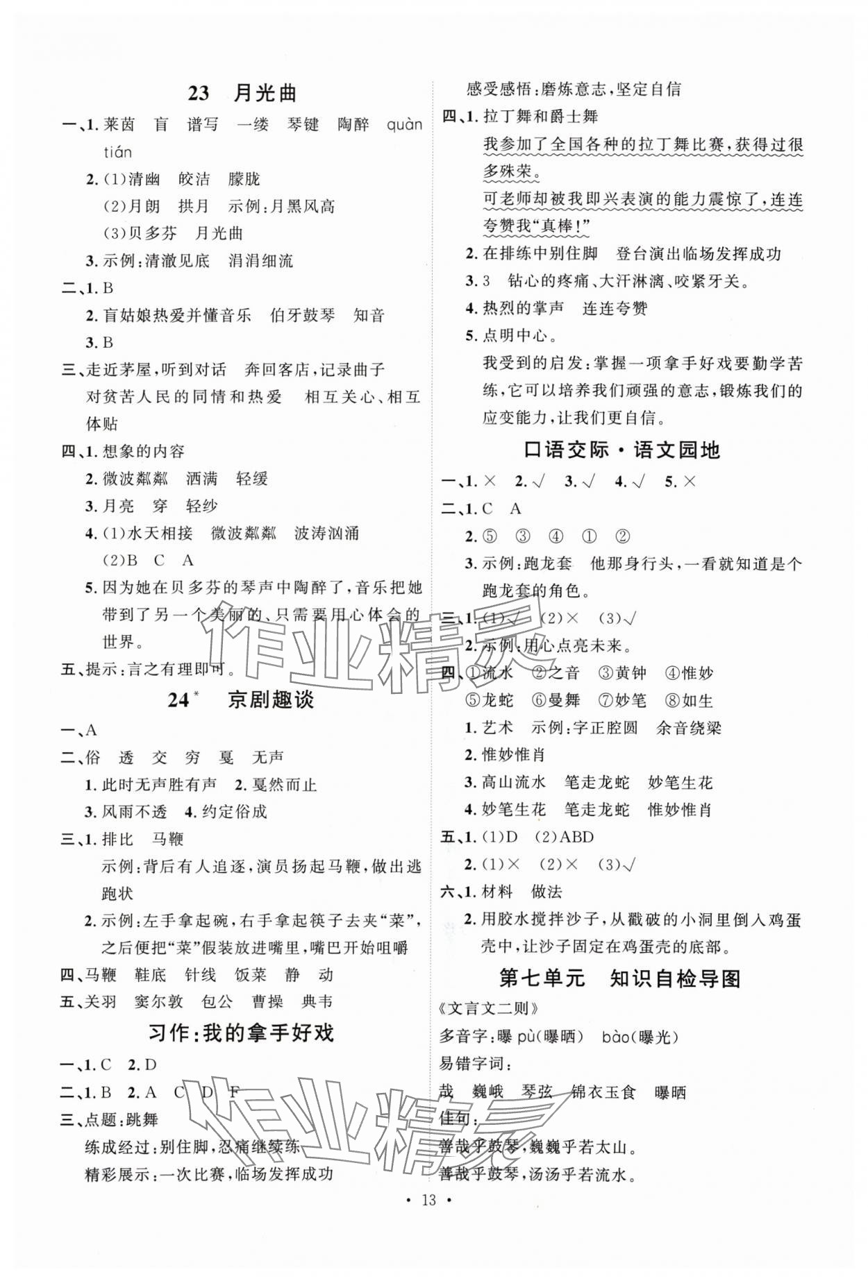 注:目前有些书本章节名称可能整理的还不是很完善,但都是按照顺序排列的,请同学们按照顺序仔细查找。练习册 2024年每时每刻快乐优加作业本六年级语文上册人教版P版 答案主要是用来给同学们做完题方便对答案用的,请勿直接抄袭。