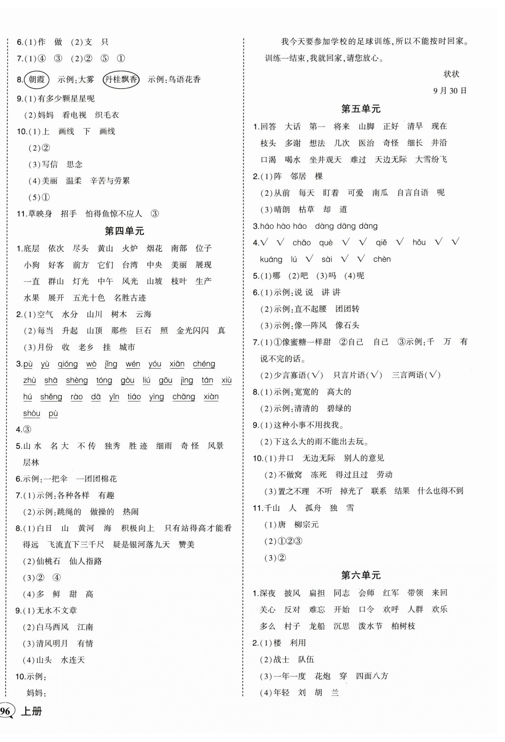 注:目前有些书本章节名称可能整理的还不是很完善,但都是按照顺序排列的,请同学们按照顺序仔细查找。练习册 2024年黄冈状元成才路状元作业本二年级语文上册人教版 答案主要是用来给同学们做完题方便对答案用的,请勿直接抄袭。