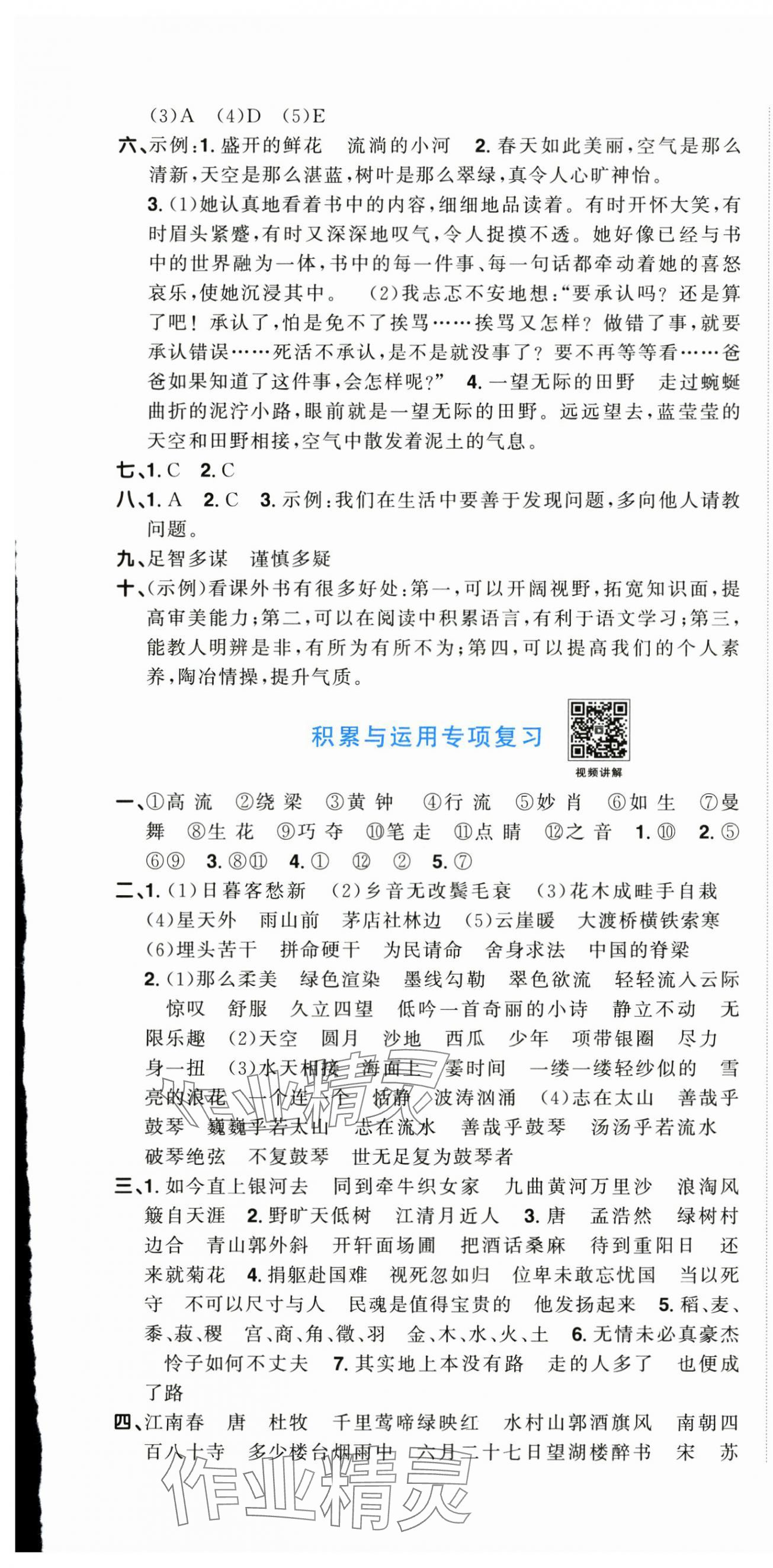 注:目前有些书本章节名称可能整理的还不是很完善,但都是按照顺序排列的,请同学们按照顺序仔细查找。练习册 2024年阳光同学一线名师全优好卷六年级语文上册人教版 答案主要是用来给同学们做完题方便对答案用的,请勿直接抄袭。