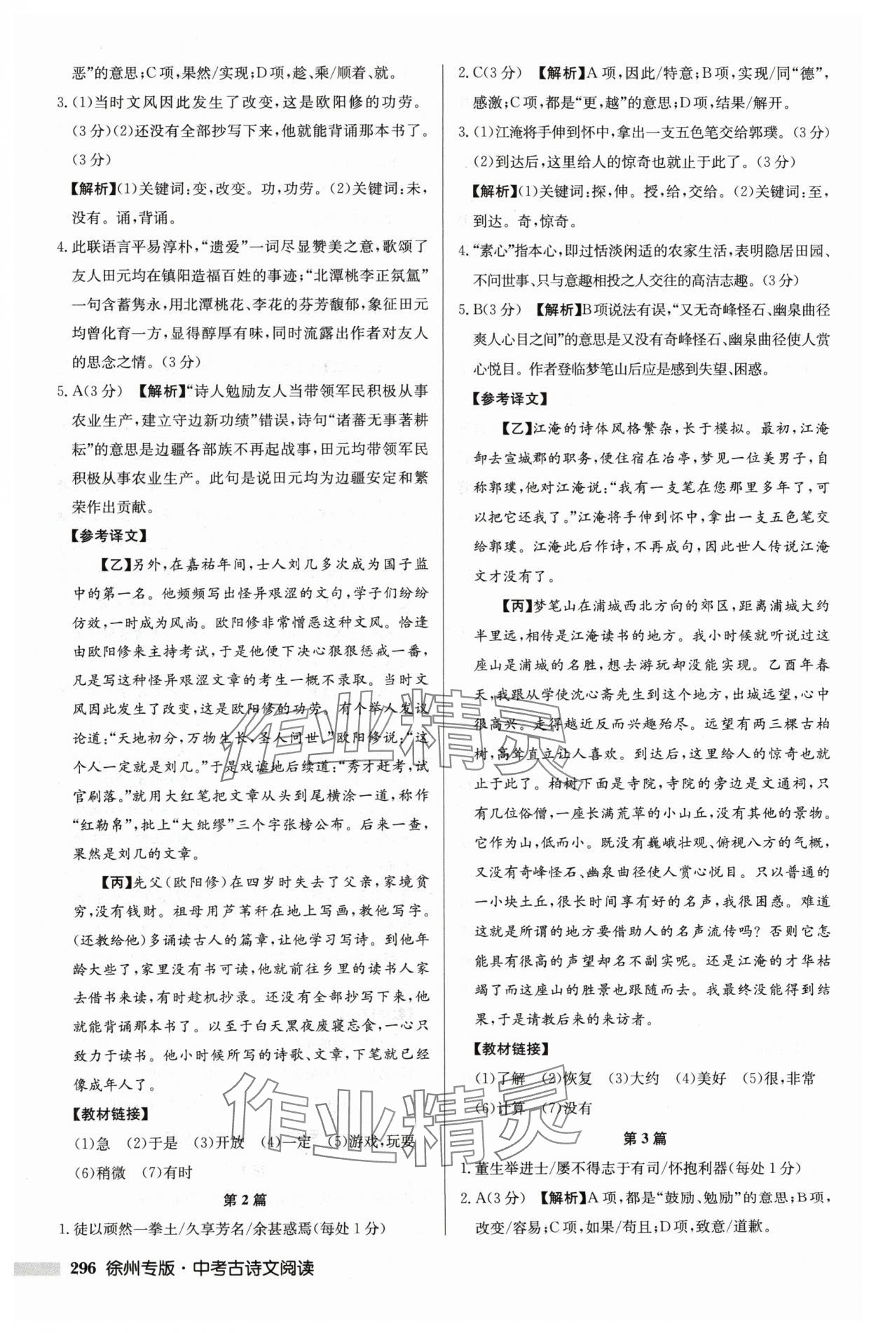 注:目前有些书本章节名称可能整理的还不是很完善,但都是按照顺序排列的,请同学们按照顺序仔细查找。练习册 2024年启东专项作业本中考古诗文阅读徐州专版 答案主要是用来给同学们做完题方便对答案用的,请勿直接抄袭。