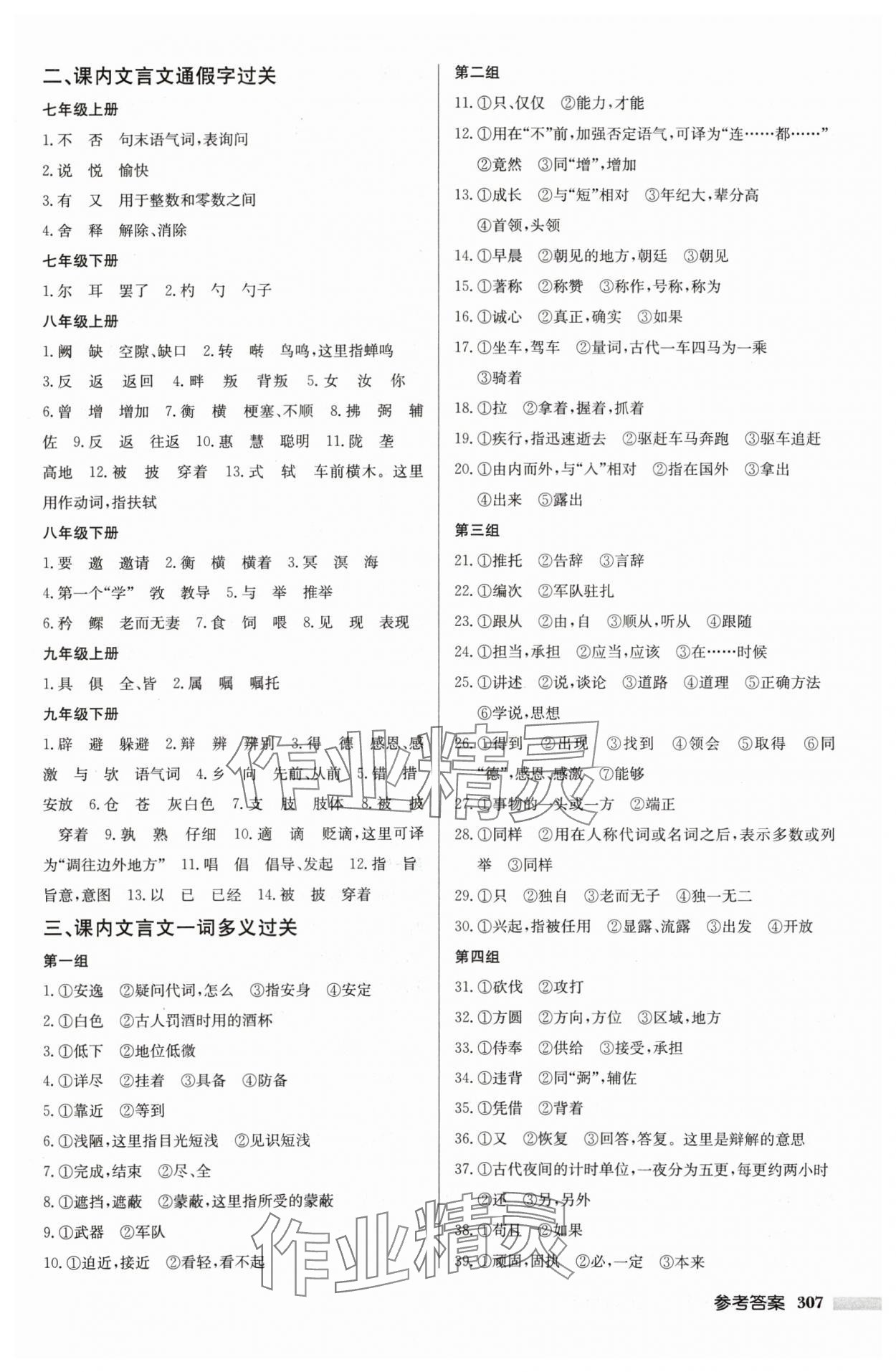 2024年启东专项作业本中考古诗文阅读徐州专版