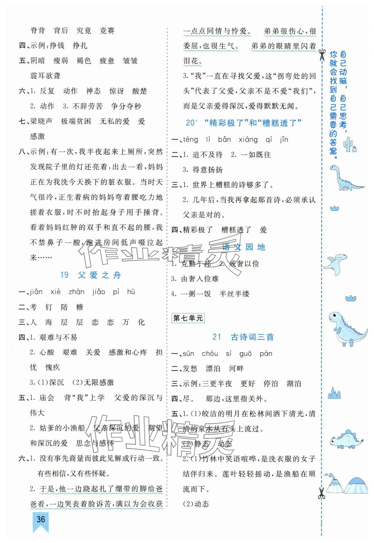 注:目前有些书本章节名称可能整理的还不是很完善,但都是按照顺序排列的,请同学们按照顺序仔细查找。练习册 2024年七彩课堂五年级语文上册人教版河南专版 答案主要是用来给同学们做完题方便对答案用的,请勿直接抄袭。