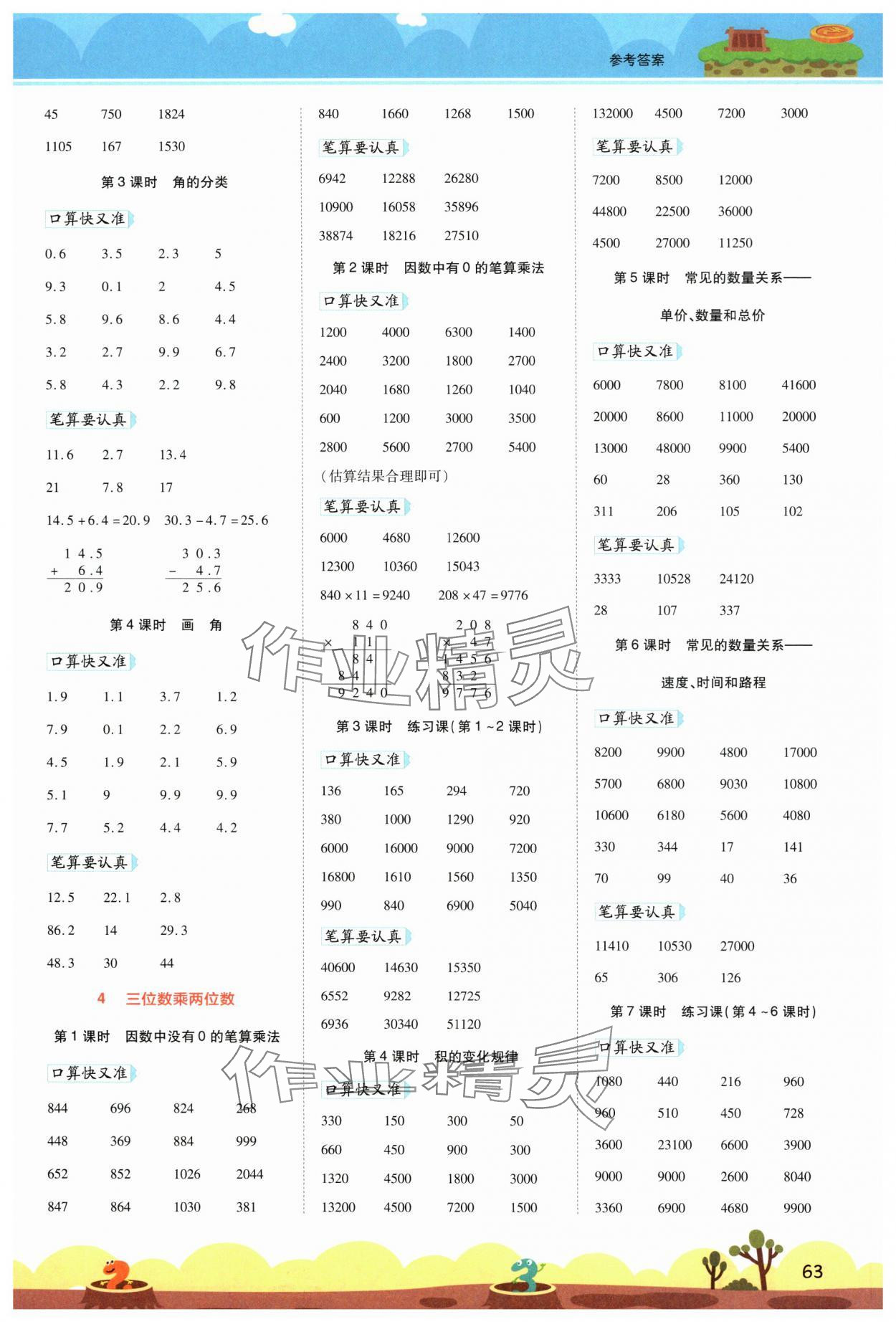注:目前有些书本章节名称可能整理的还不是很完善,但都是按照顺序排列的,请同学们按照顺序仔细查找。练习册 2024年开学了口算笔算天天练四年级数学上册人教版 答案主要是用来给同学们做完题方便对答案用的,请勿直接抄袭。