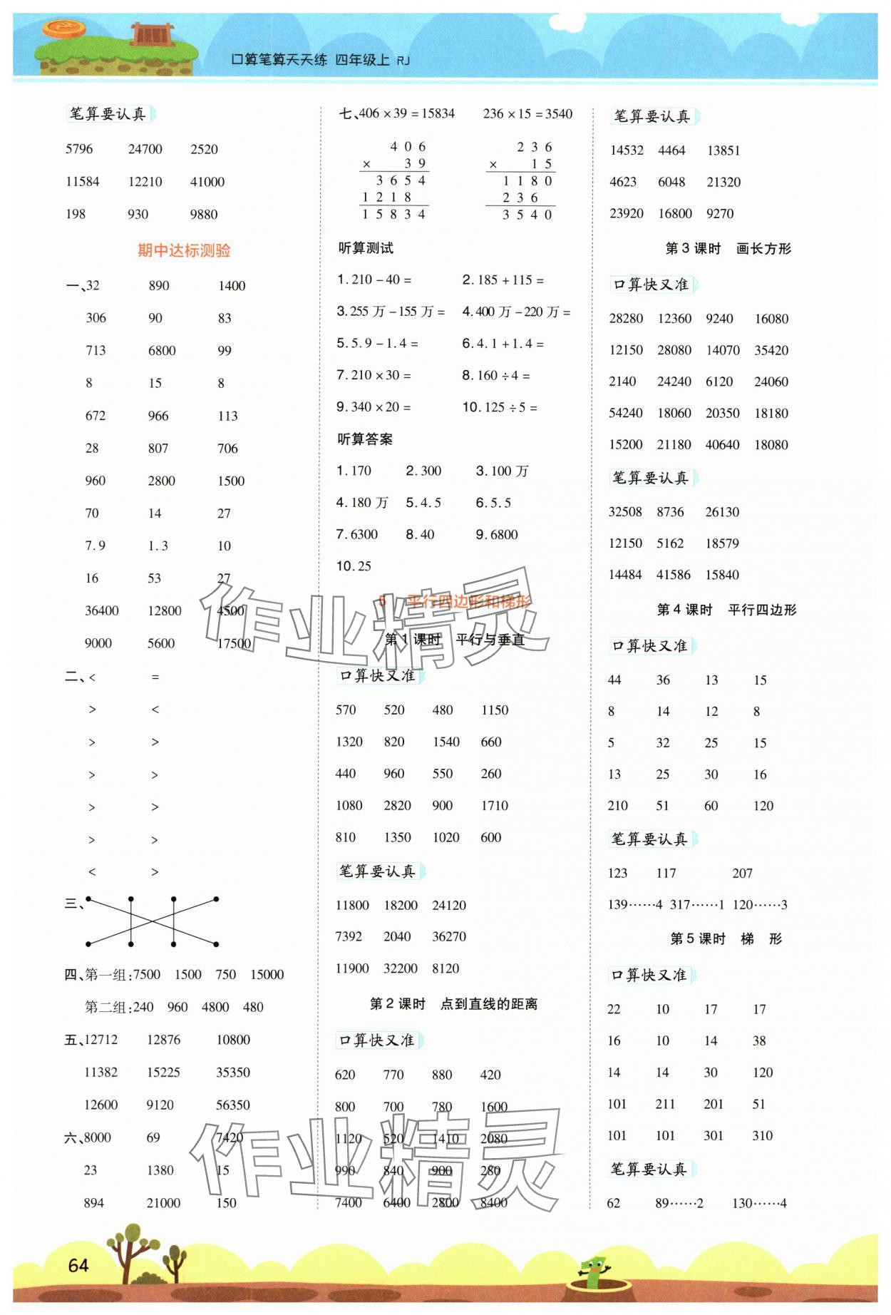 注:目前有些书本章节名称可能整理的还不是很完善,但都是按照顺序排列的,请同学们按照顺序仔细查找。练习册 2024年开学了口算笔算天天练四年级数学上册人教版 答案主要是用来给同学们做完题方便对答案用的,请勿直接抄袭。