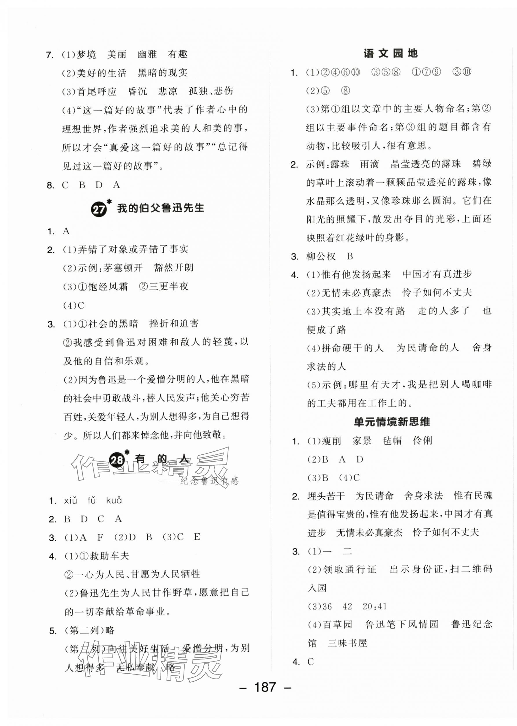 注:目前有些书本章节名称可能整理的还不是很完善,但都是按照顺序排列的,请同学们按照顺序仔细查找。练习册 2024年全品学练考六年级语文上册人教版 答案主要是用来给同学们做完题方便对答案用的,请勿直接抄袭。