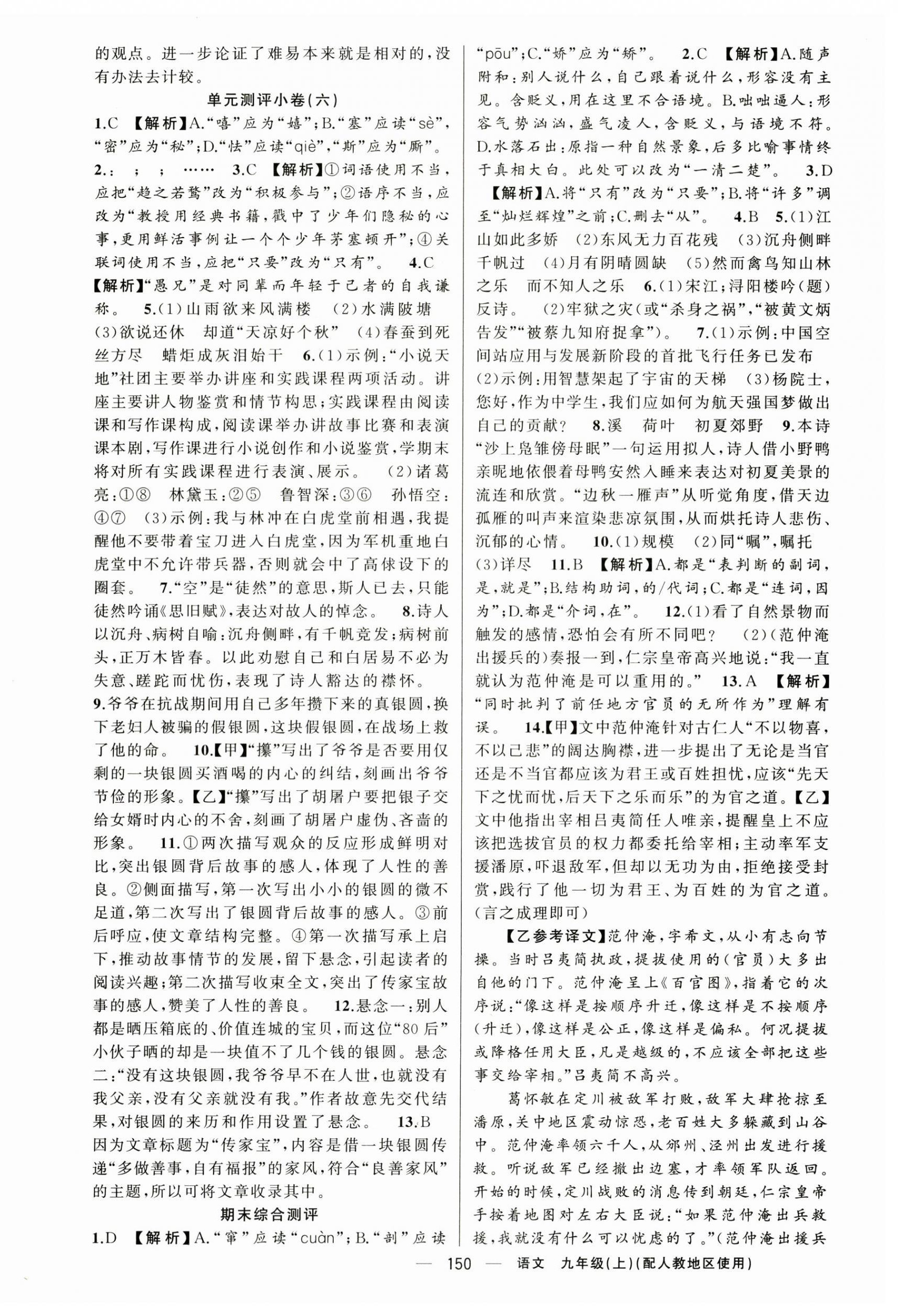 注:目前有些书本章节名称可能整理的还不是很完善,但都是按照顺序排列的,请同学们按照顺序仔细查找。练习册 2024年黄冈金牌之路练闯考九年级语文上册人教版 答案主要是用来给同学们做完题方便对答案用的,请勿直接抄袭。