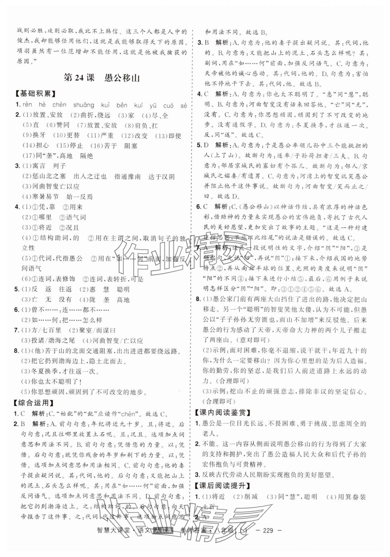注:目前有些书本章节名称可能整理的还不是很完善,但都是按照顺序排列的,请同学们按照顺序仔细查找。练习册 2024年初中新课标名师学案智慧大课堂八年级语文上册人教版 答案主要是用来给同学们做完题方便对答案用的,请勿直接抄袭。
