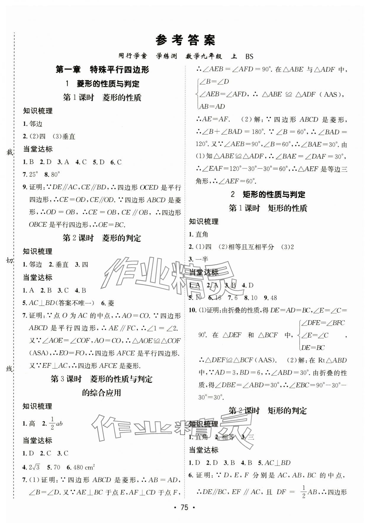 注:目前有些书本章节名称可能整理的还不是很完善,但都是按照顺序排列的,请同学们按照顺序仔细查找。练习册 2024年同行学案九年级数学上册北师大版 答案主要是用来给同学们做完题方便对答案用的,请勿直接抄袭。