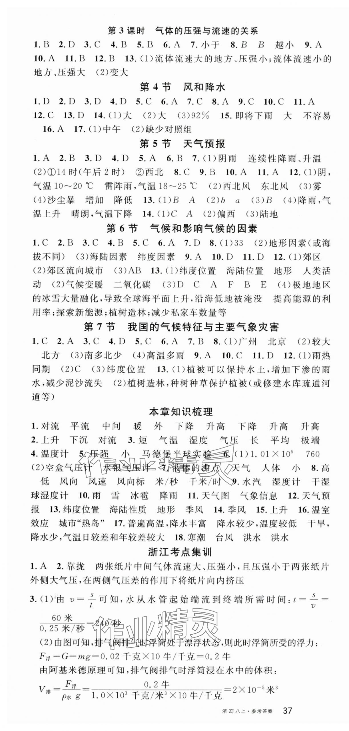 2024年名校课堂八年级科学上册浙教版浙江专版