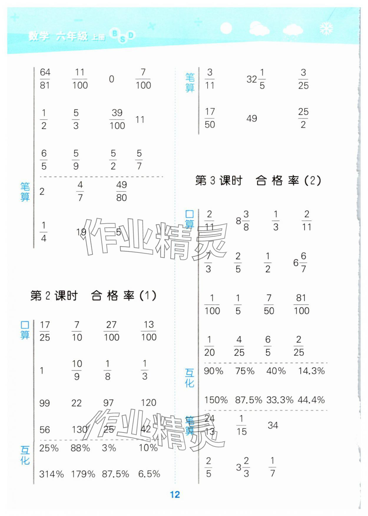 注:目前有些书本章节名称可能整理的还不是很完善,但都是按照顺序排列的,请同学们按照顺序仔细查找。练习册 2024年口算大通关六年级数学上册北师大版 答案主要是用来给同学们做完题方便对答案用的,请勿直接抄袭。