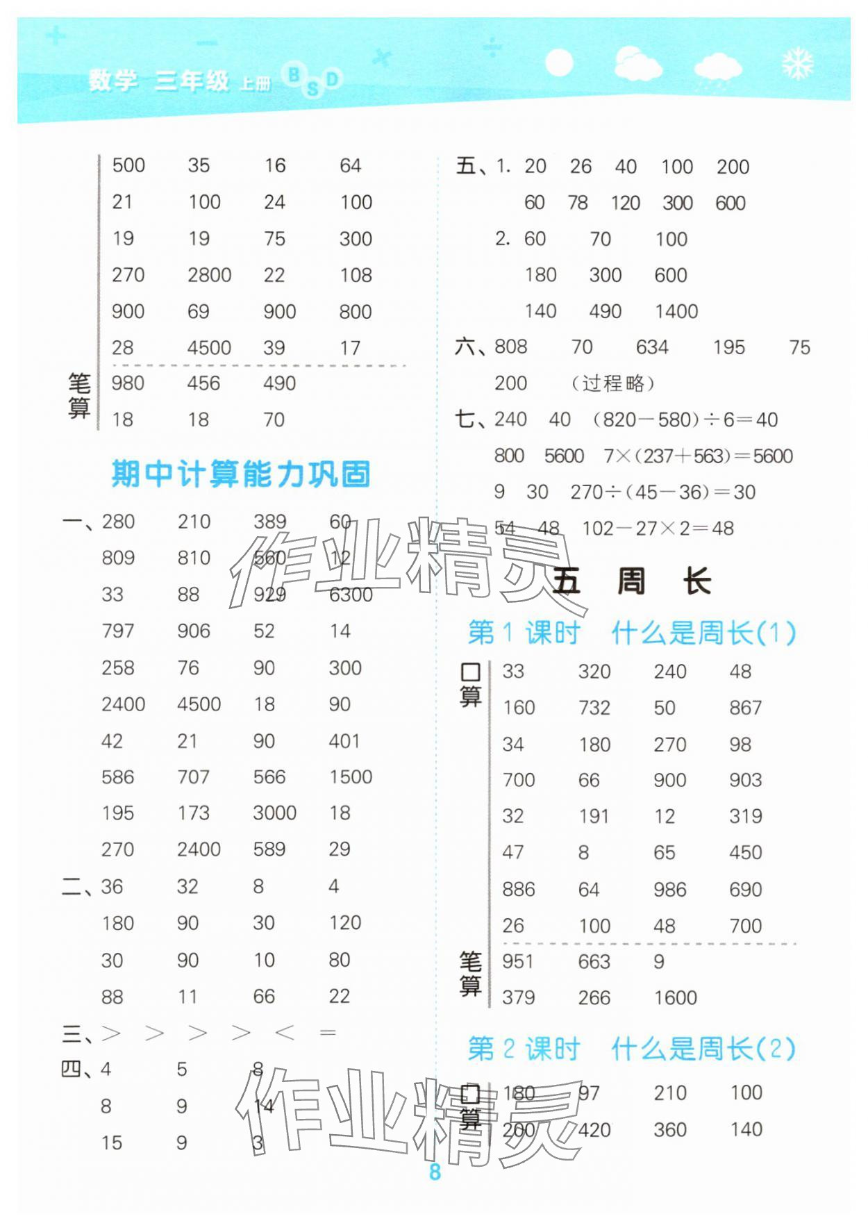 注:目前有些书本章节名称可能整理的还不是很完善,但都是按照顺序排列的,请同学们按照顺序仔细查找。练习册 2024年口算大通关三年级数学上册北师大版 答案主要是用来给同学们做完题方便对答案用的,请勿直接抄袭。